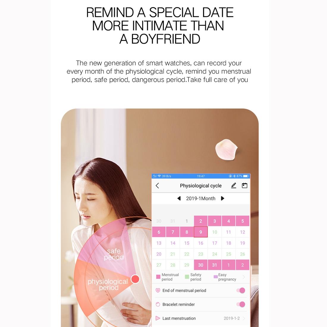 • Female physiological cycle tracking and reminders