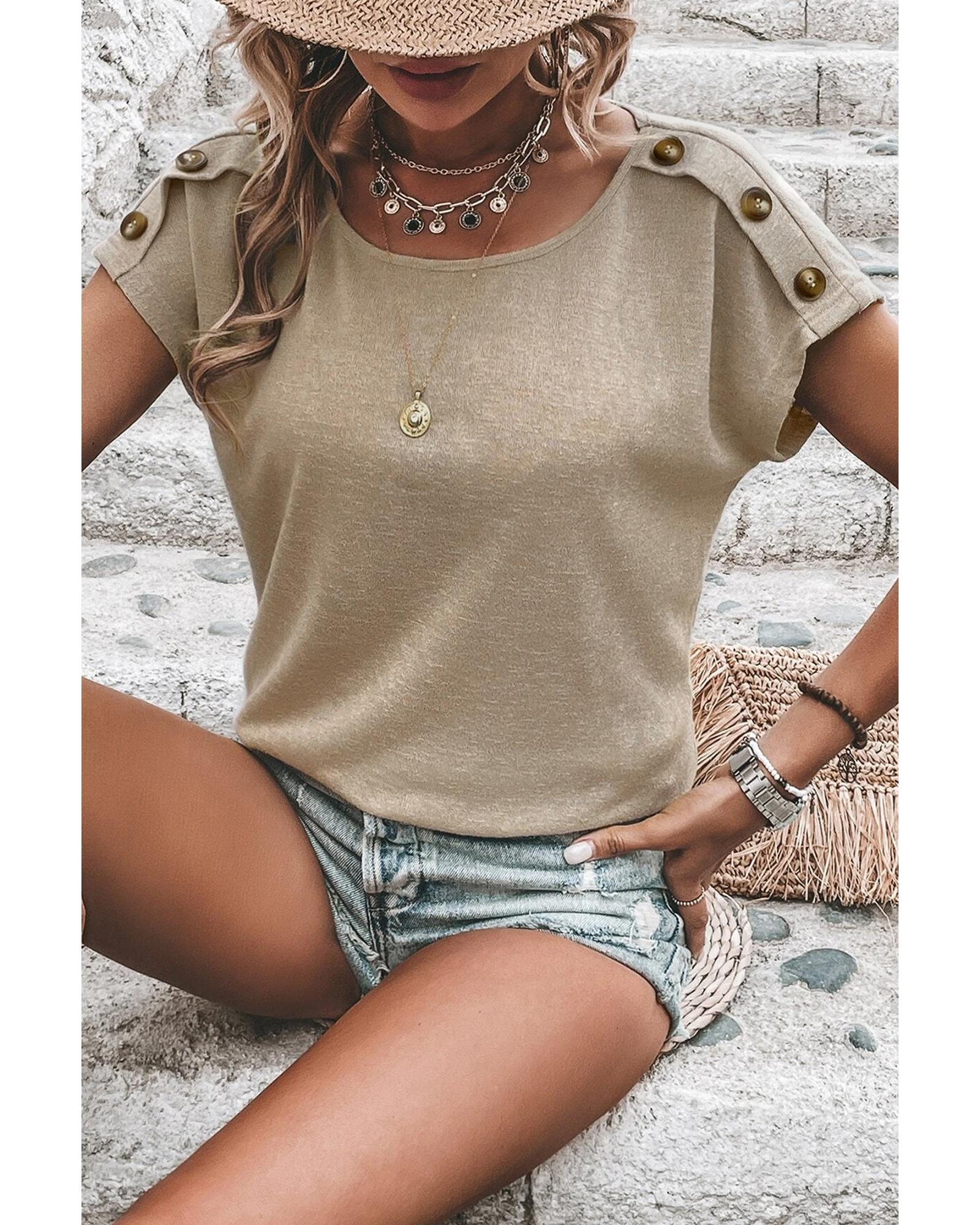Smoke Gray Button Detail Batwing Sleeve Casual Tee – S