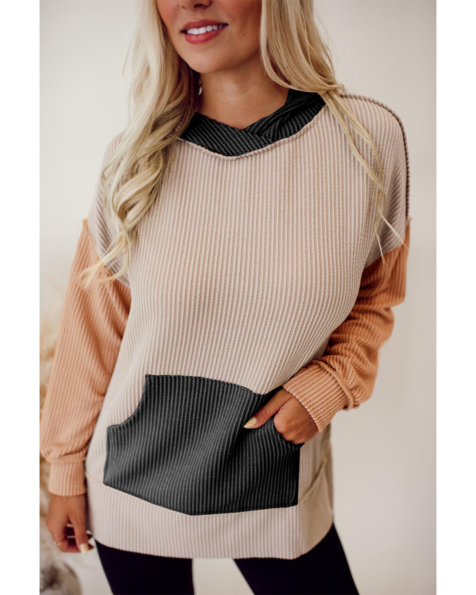 White Waffle Patch Plaid Sleeve Kangaroo Pocket Hoodie - XL