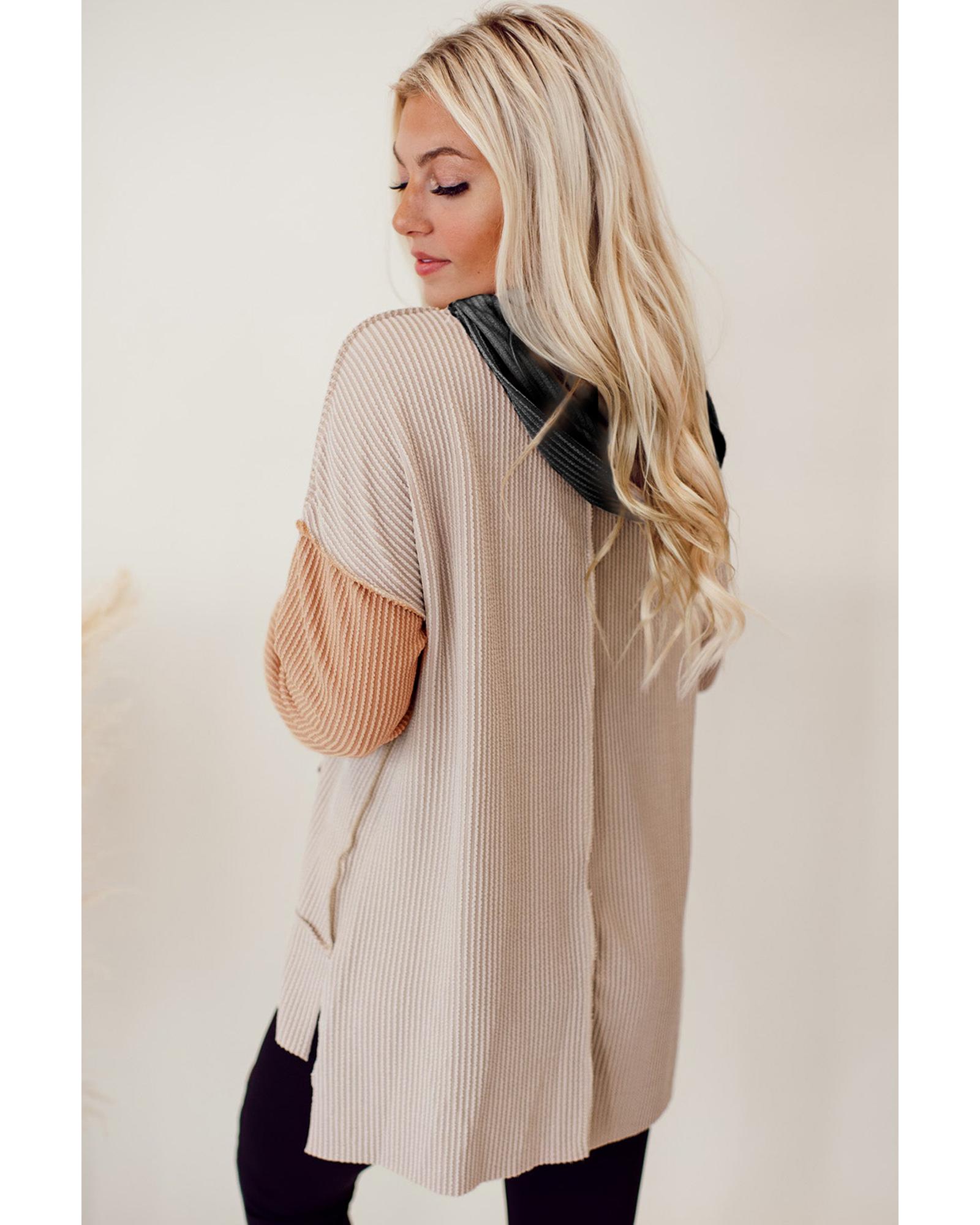 Smoke Gray Color Block High Low Textured Hoodie – S