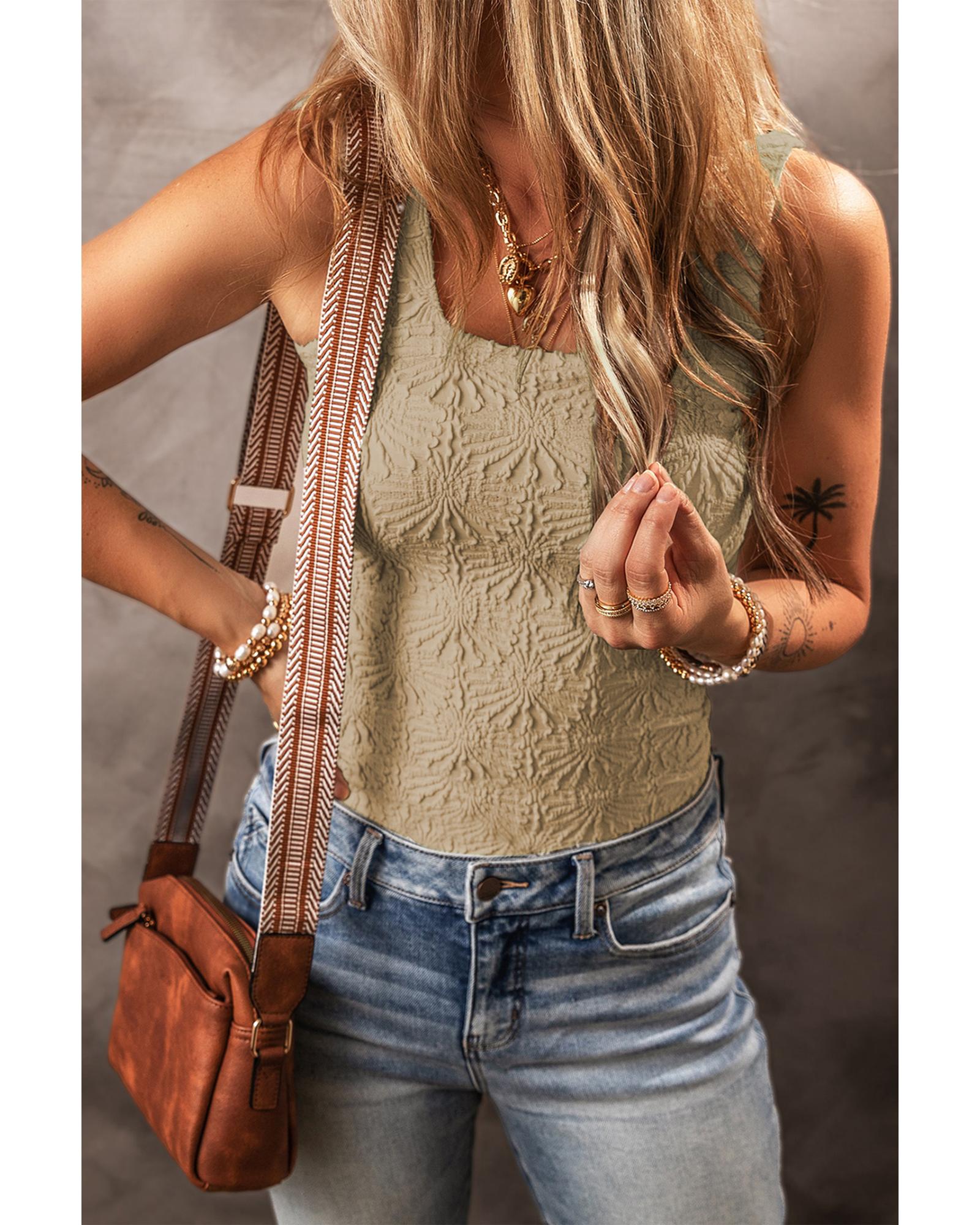 Smoke Gray Floral Jacquard Square Neck Tank Top – L