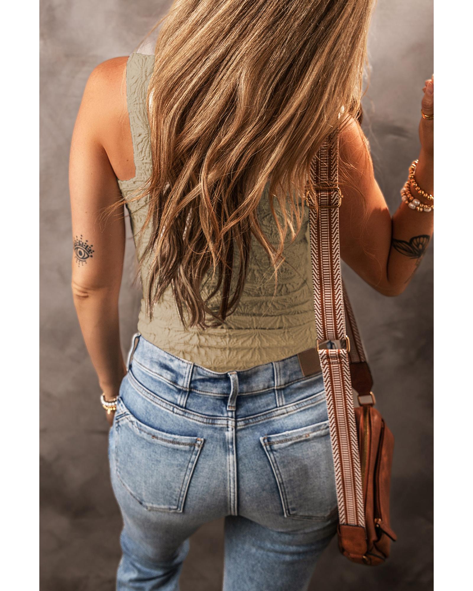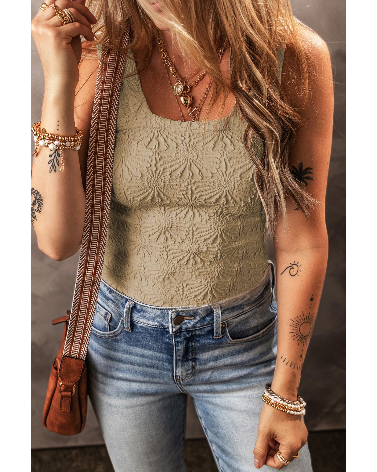 Smoke Gray Floral Jacquard Square Neck Tank Top – M