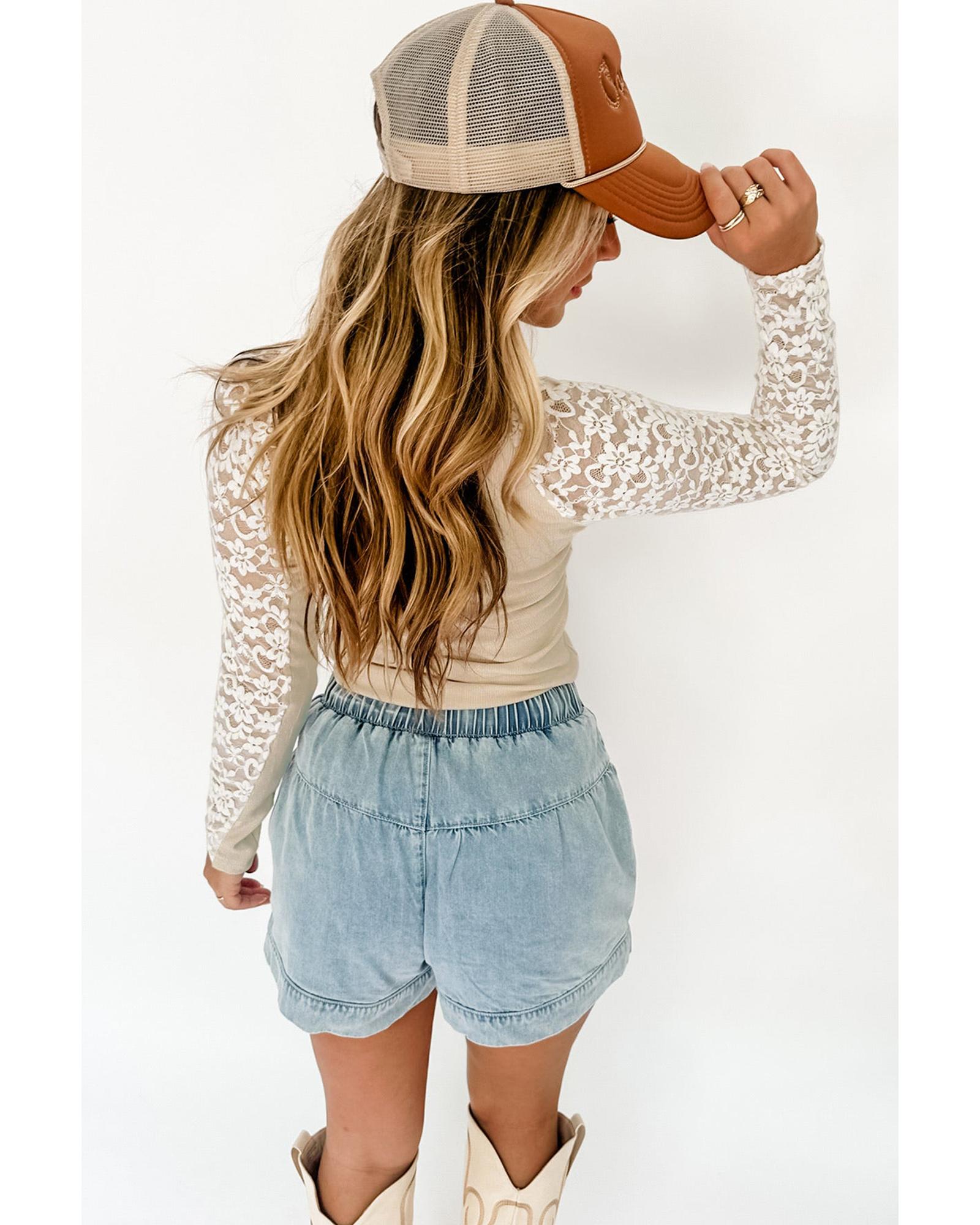 - Long sleeves with floral lace detail
