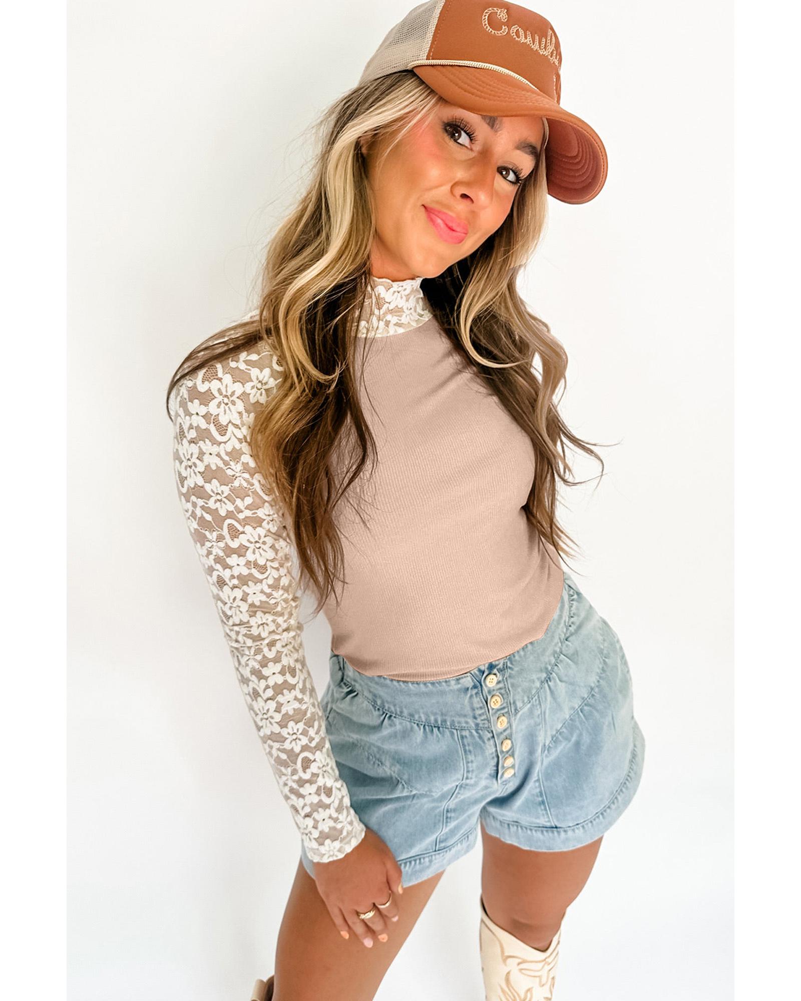 - Long sleeves with floral lace detail