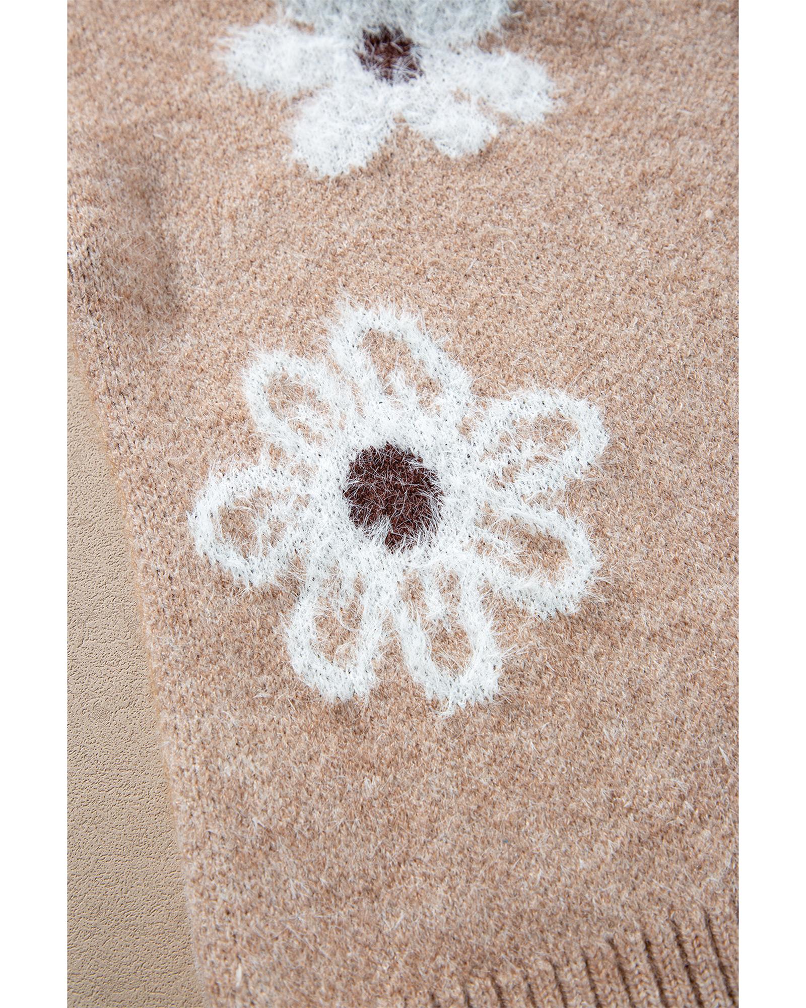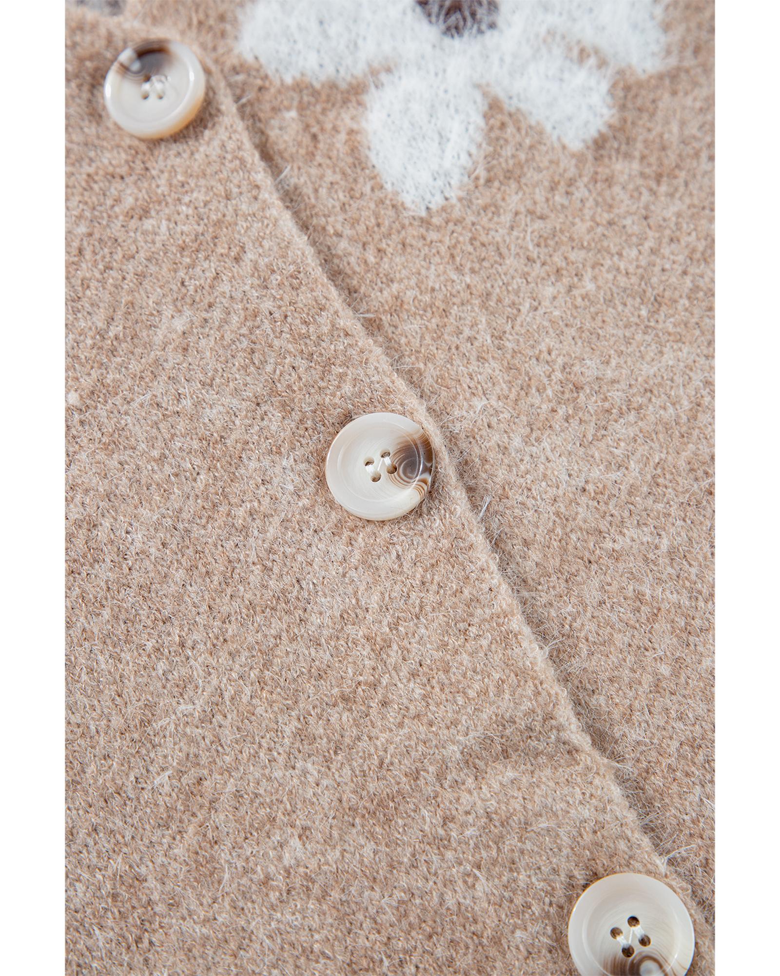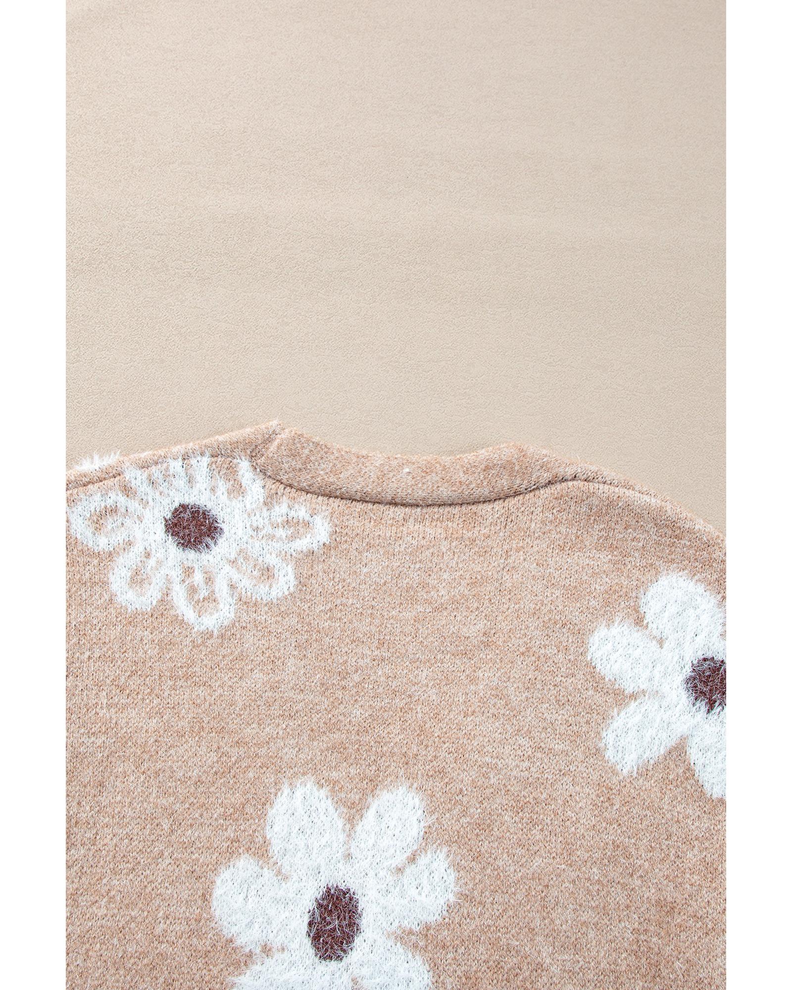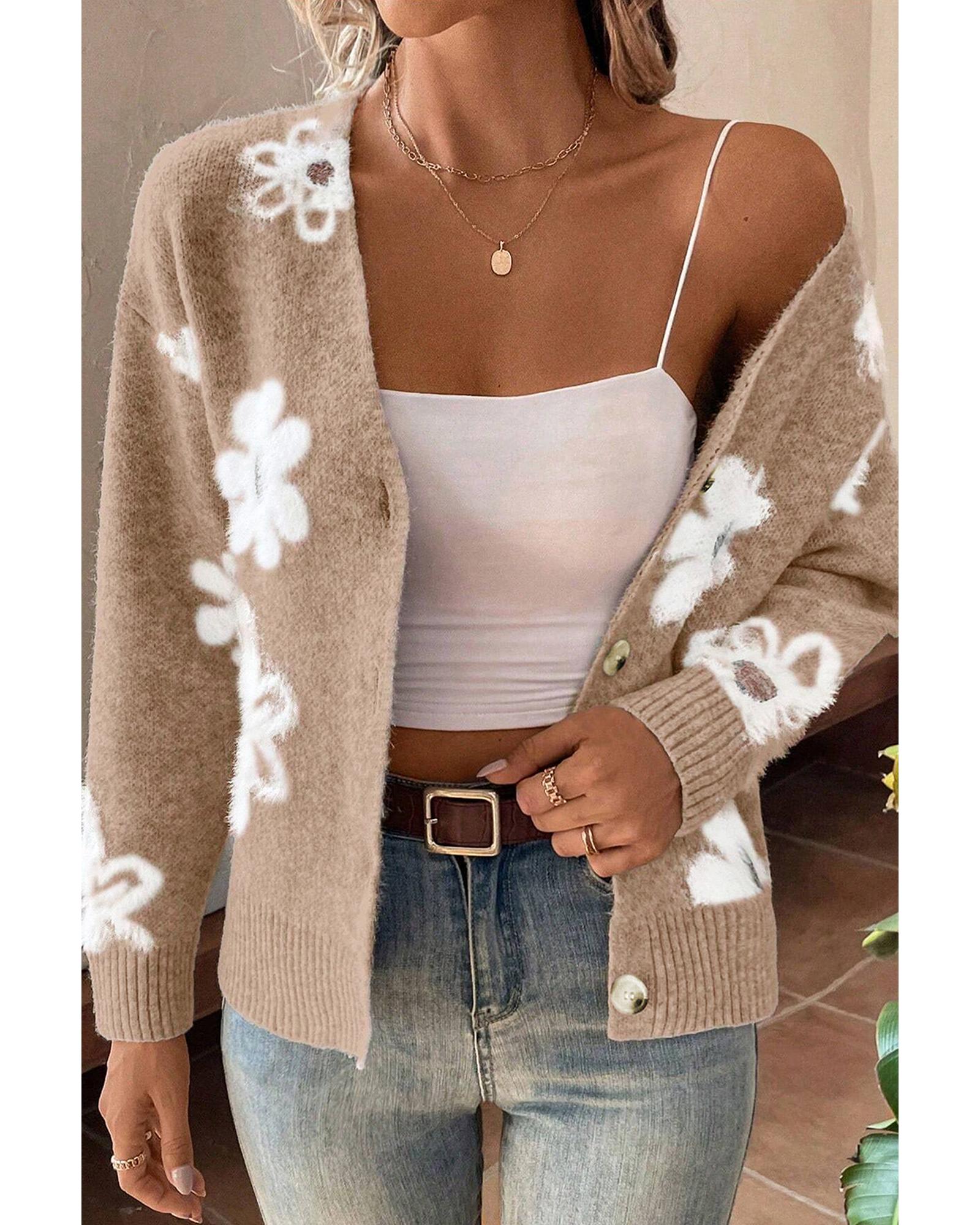 - Smoke Gray Floral Print V Neck Knitted Button up Cardigan