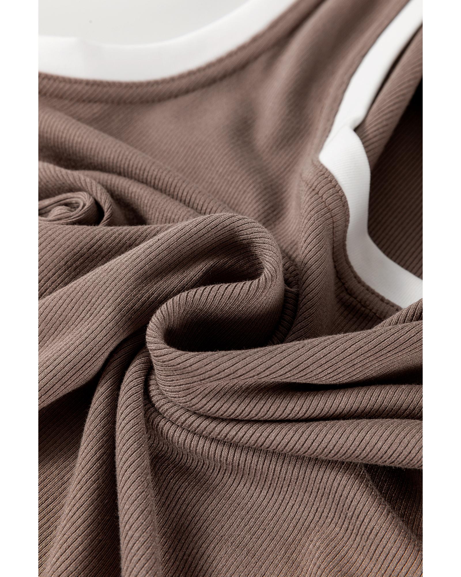 Smoke Gray Ribbed Knit Colorblock Edge U Neck Slim Fit Tank Top – L