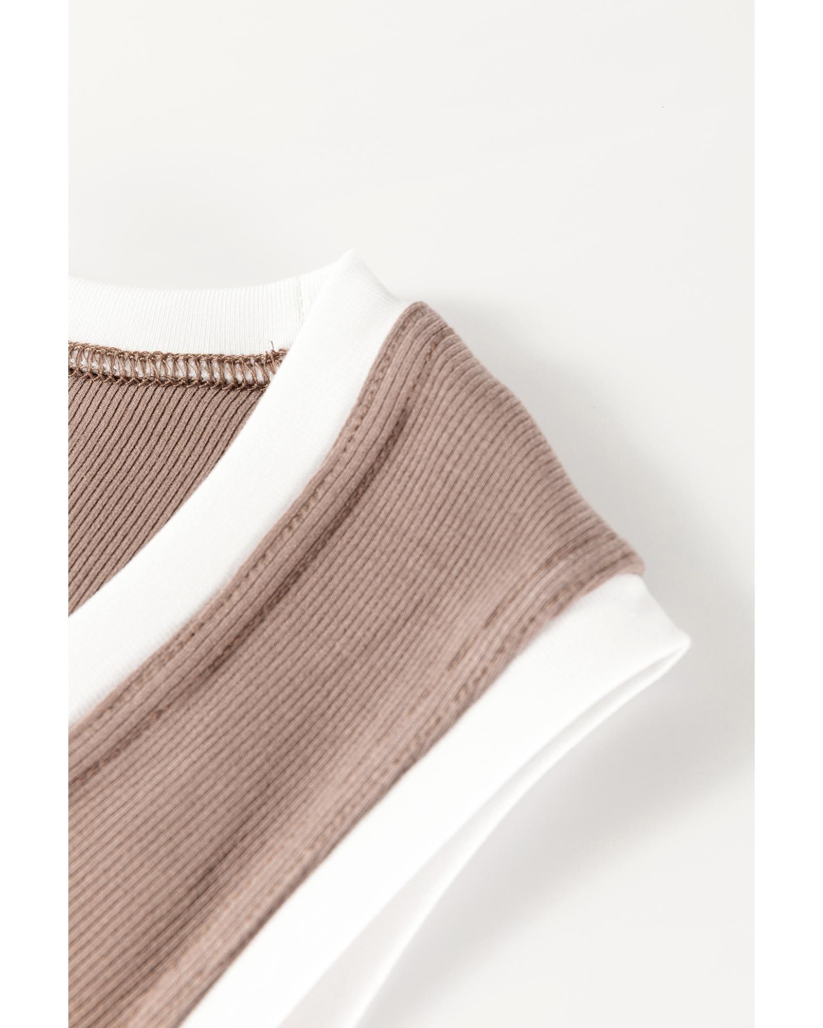Smoke Gray Ribbed Knit Colorblock Edge U Neck Slim Fit Tank Top – XL