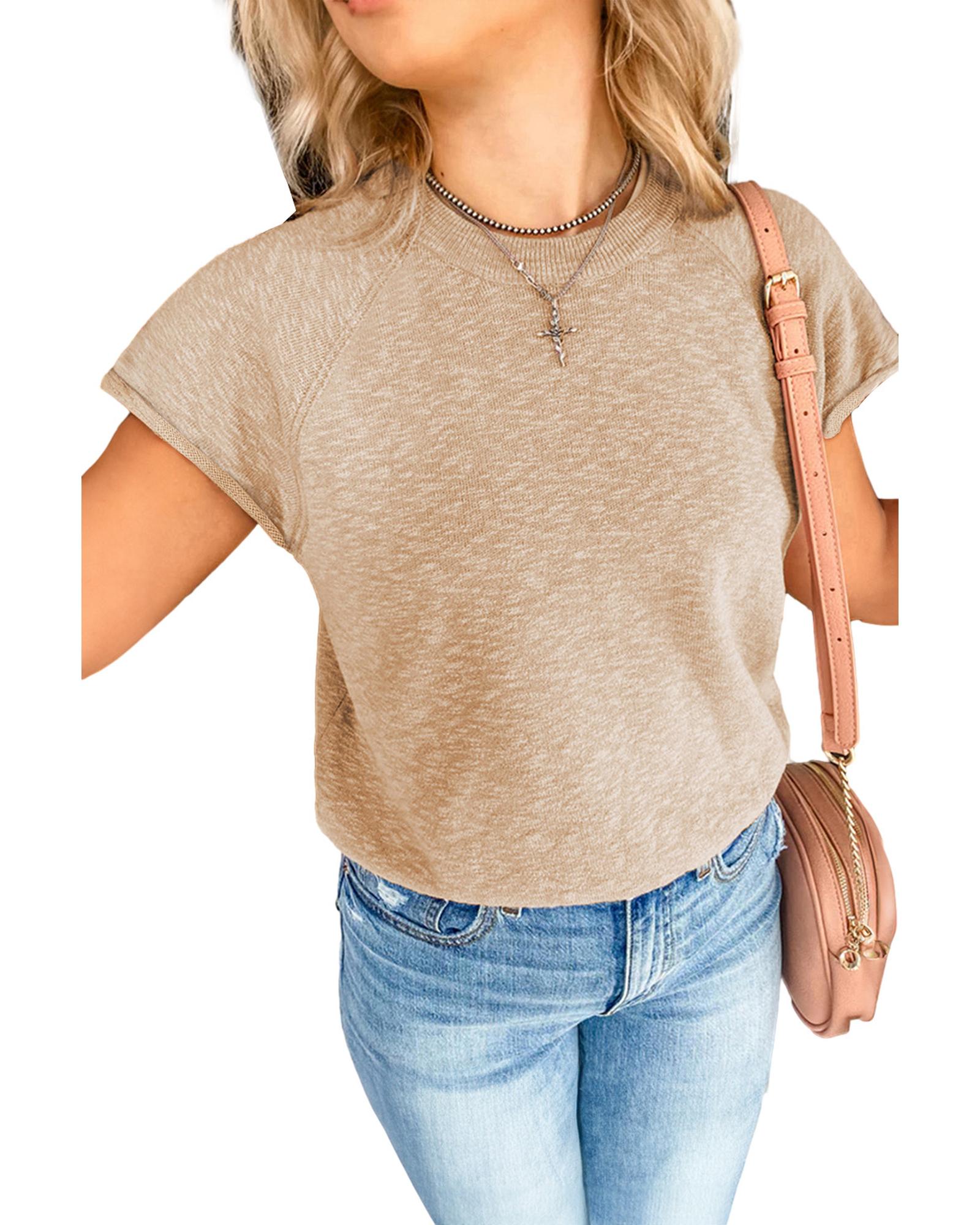 • Smoke Gray Ribbed Raglan Short Sleeve Sweater
