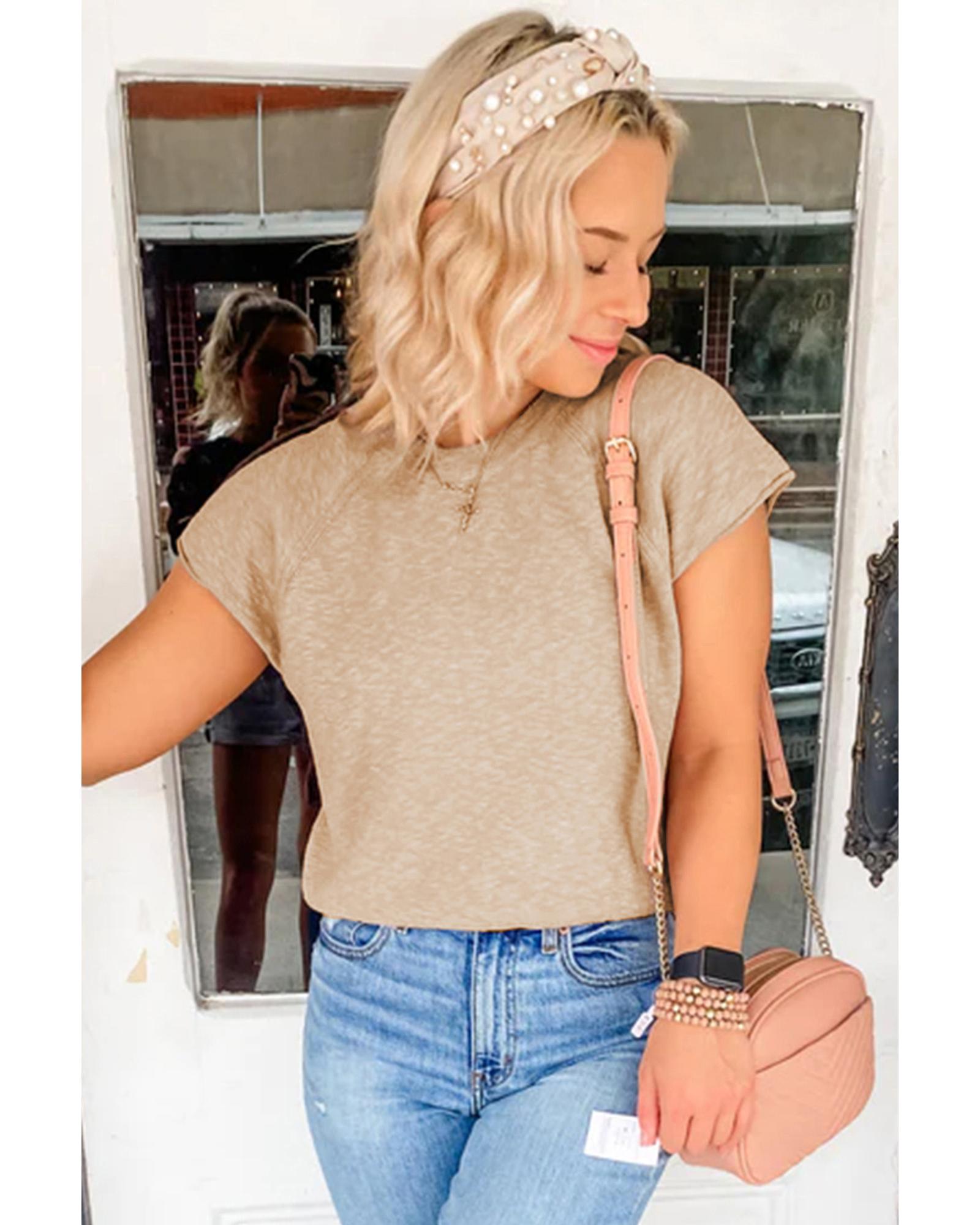• Smoke Gray Ribbed Raglan Short Sleeve Sweater