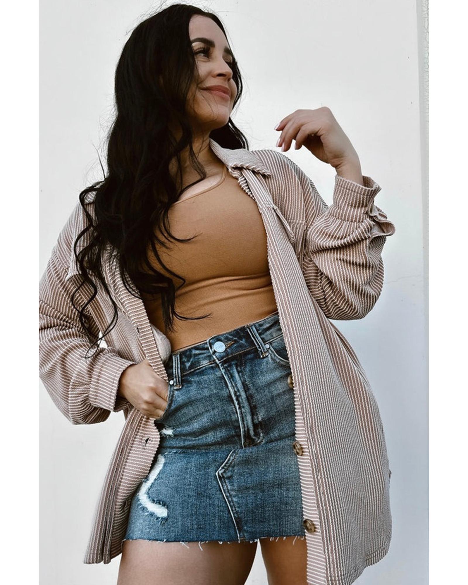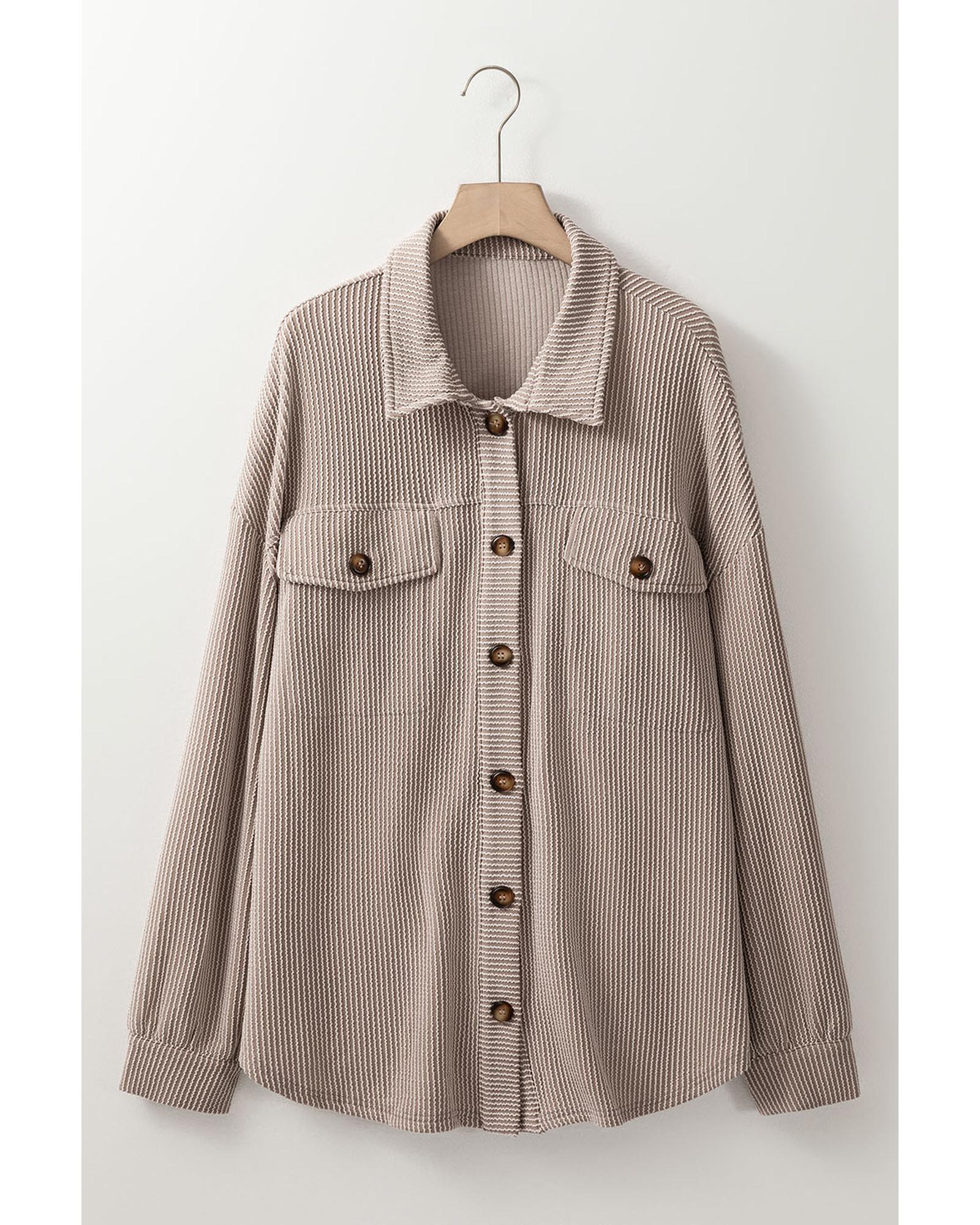 Smoke Gray Solid Corded Drop Shoulder Plus Size Shacket – 2X