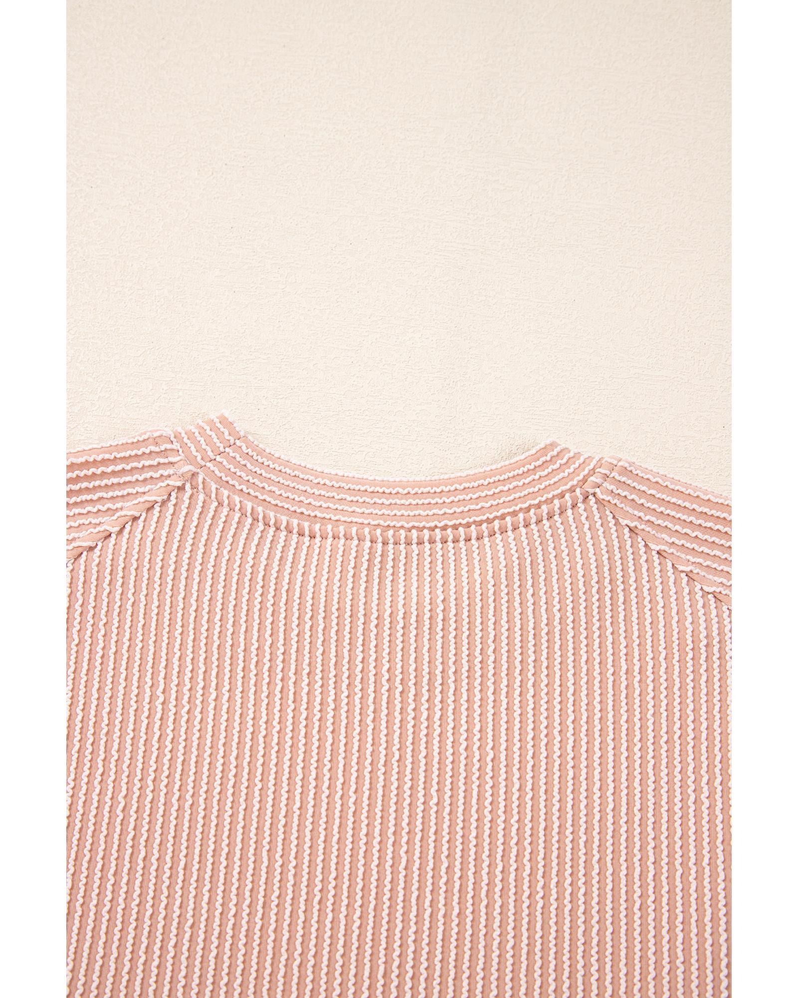Pink Corded Colorblock Patchwork Short Sleeve Top and Loose Pants Set - M