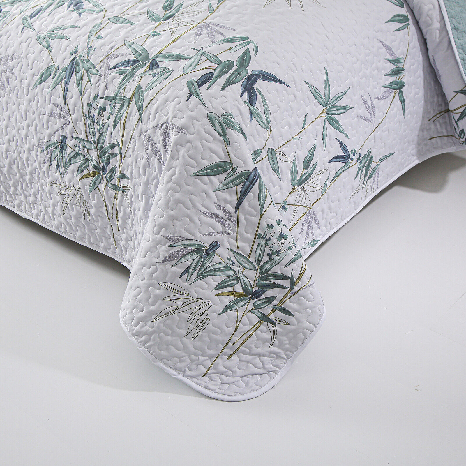 Soft leafey bloom Quilted 3 Pc Bedspread & Pillow Cover Set