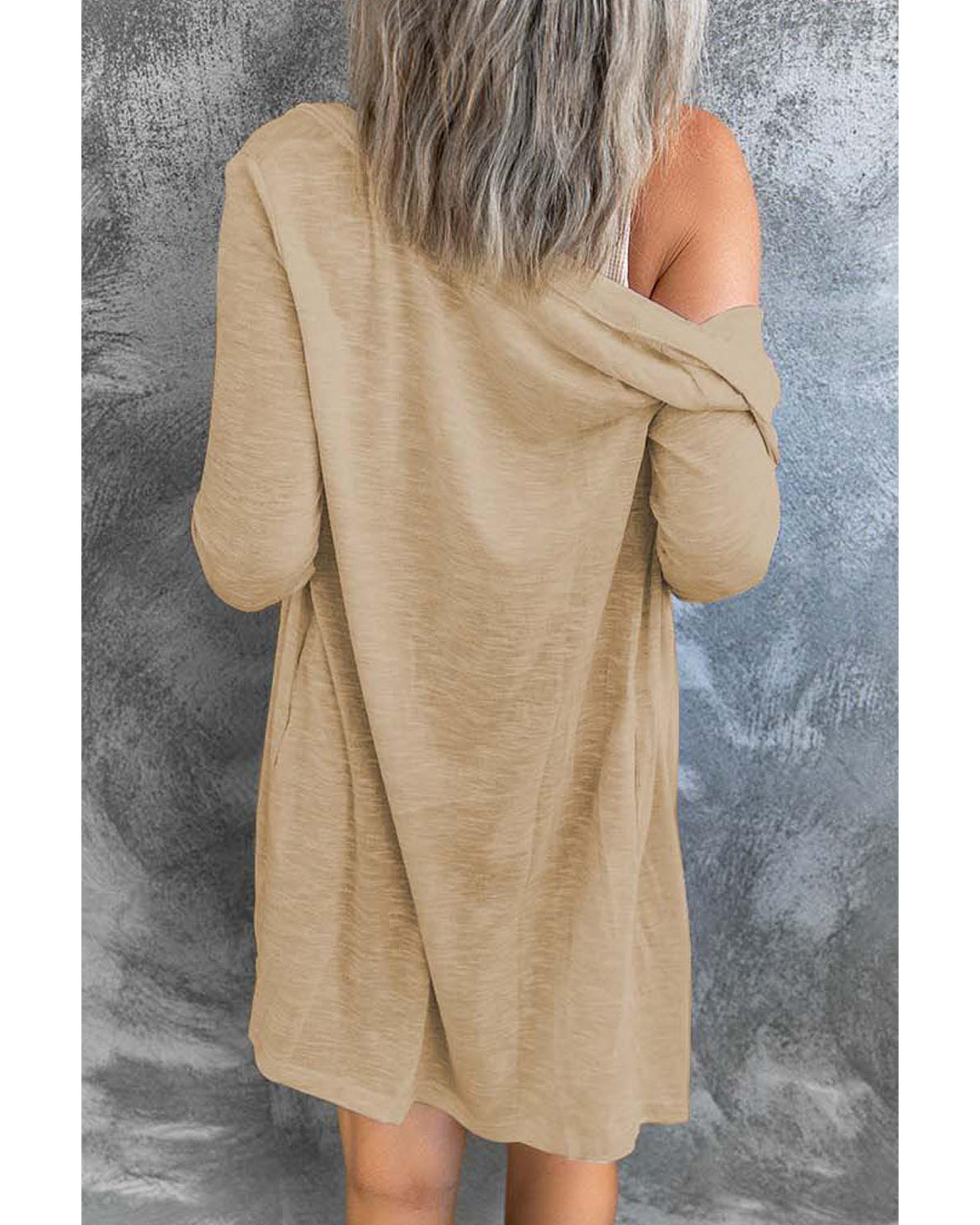Solid Color Open-Front Buttons Cardigan – 2XL
