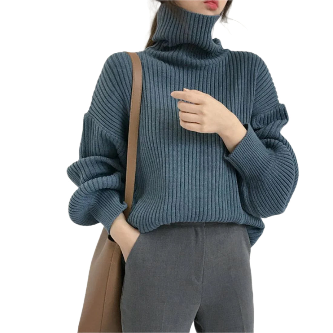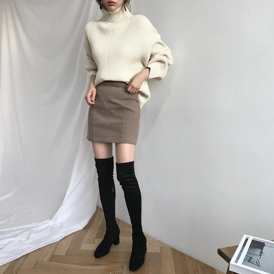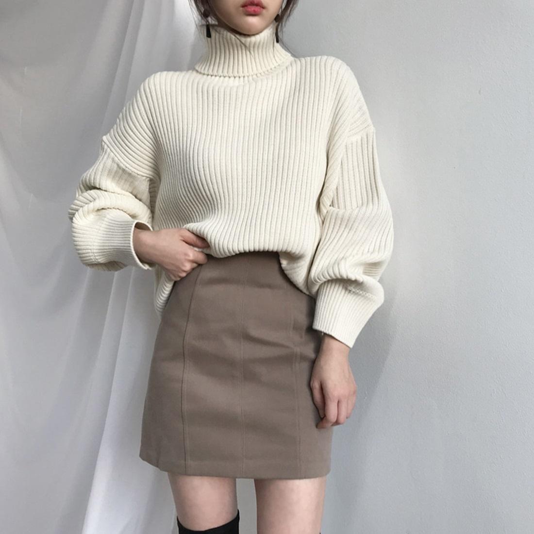 • 1 x Solid Colour Turtleneck Outer Wear Pullover Casual Sweater Beige – Free Size