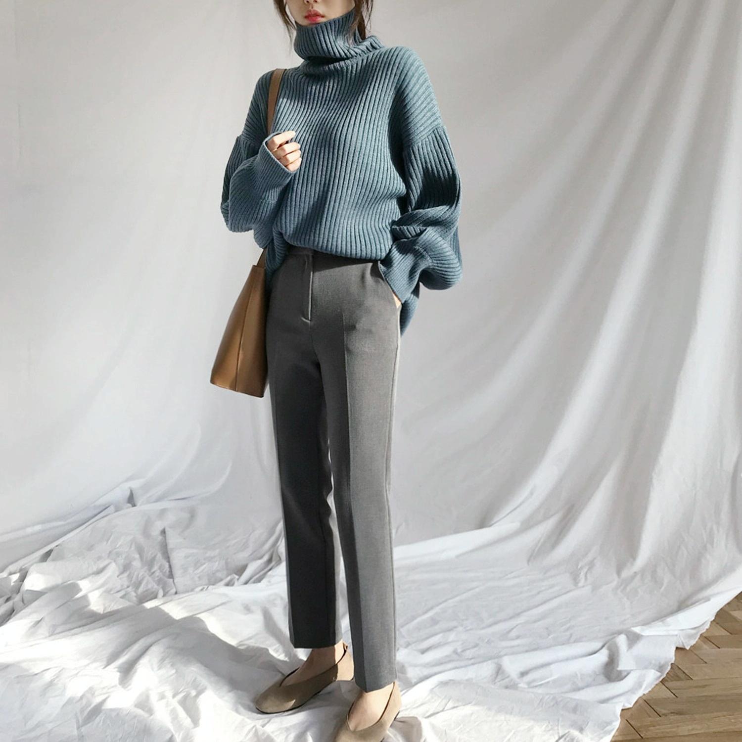• 1 x Solid Colour Turtleneck Outer Wear Pullover Casual Sweater Beige – Free Size