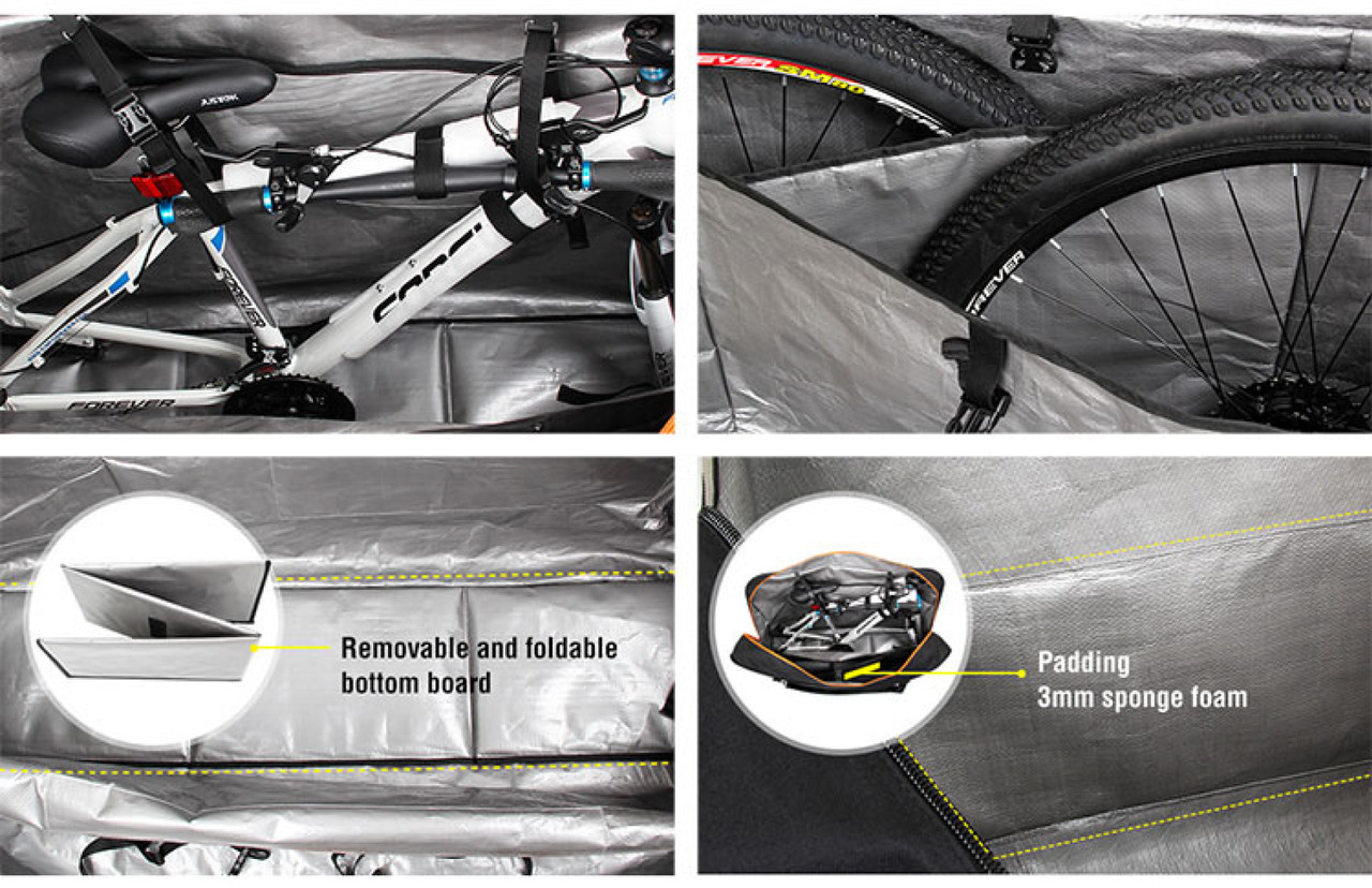 MULTI-USE BIKE TRANSPORT BAG– This bike carrier bag is perfect for any traveler with a cycle. Portable storage for most sizes and kinds of bicycle. The most convenient way to store your full size bike . You can take it on a bus, train, car or even boat trip. Do not suggest using it for transporting your bike by air.