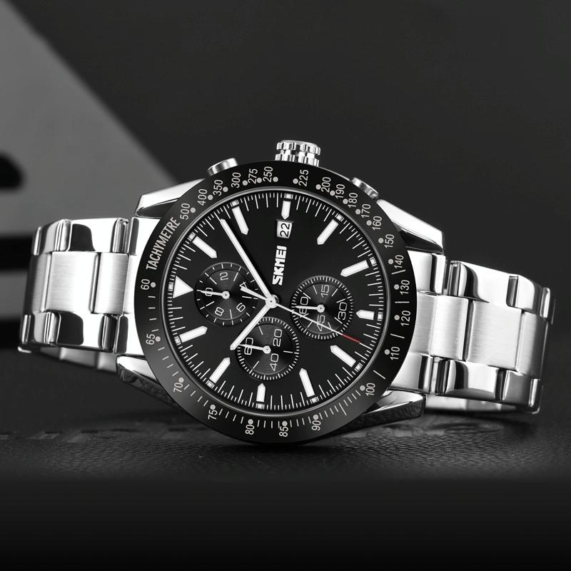 • 1 x 9253 Men Date Six Pin Stainless Steel Strap Quartz Watch