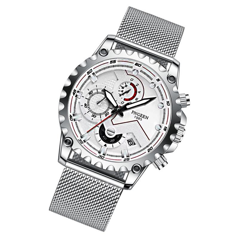 Stainless Steel Waterproof Men Sports Watch – White Steel White Surface