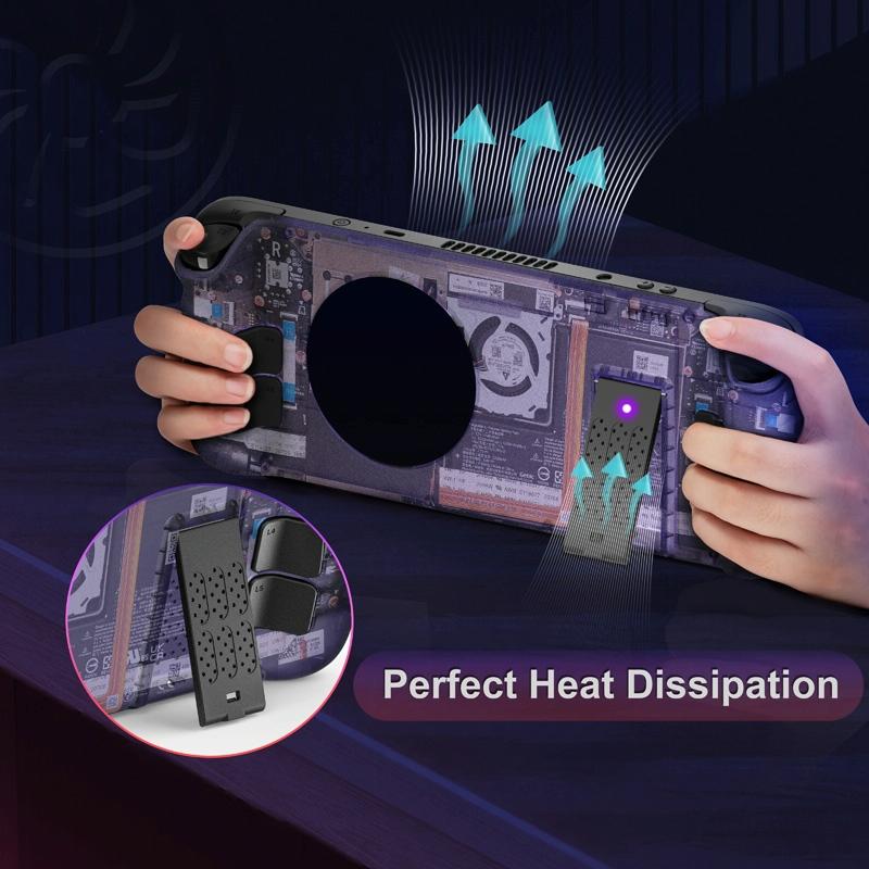 Steam Deck Gaming Console Case With Transparent Thermal Back And Bracket – Purple