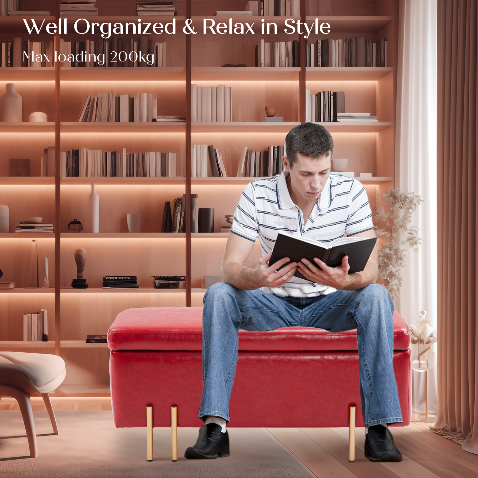 Storage Ottoman Stool Bench Seat 97cm PU Leather RED