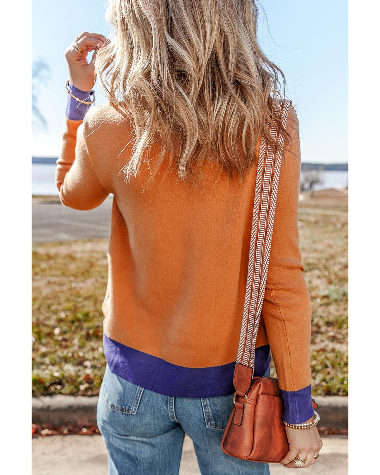 Straw Yellow Color Contrast Edge Mock Neck Slim Fit Sweater – L