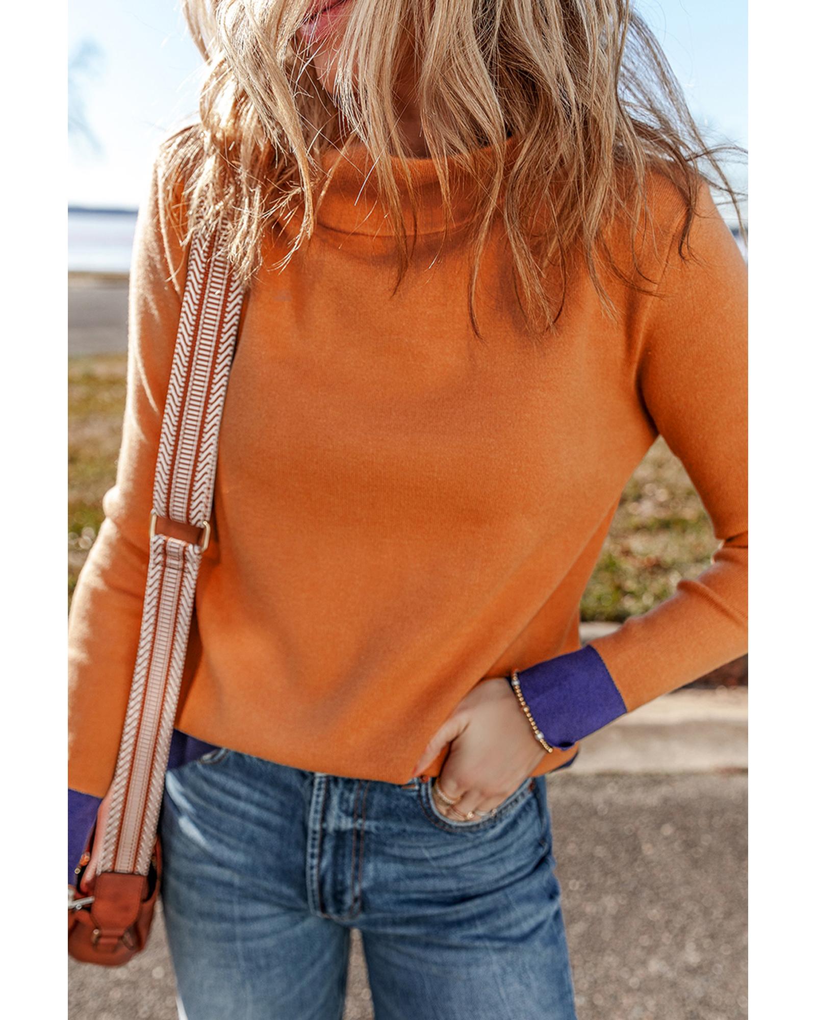 Straw Yellow Color Contrast Edge Mock Neck Slim Fit Sweater – S