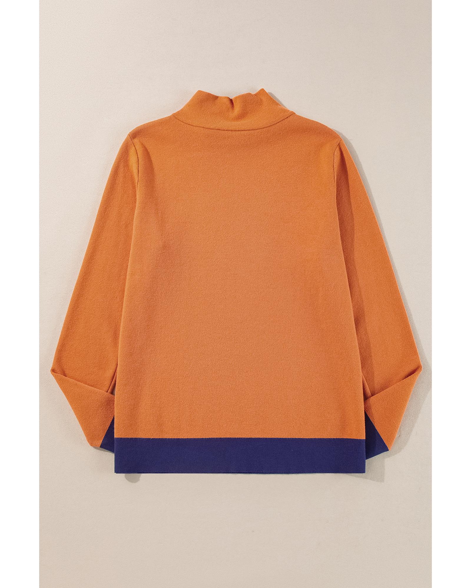 Straw Yellow Color Contrast Edge Mock Neck Slim Fit Sweater – XL