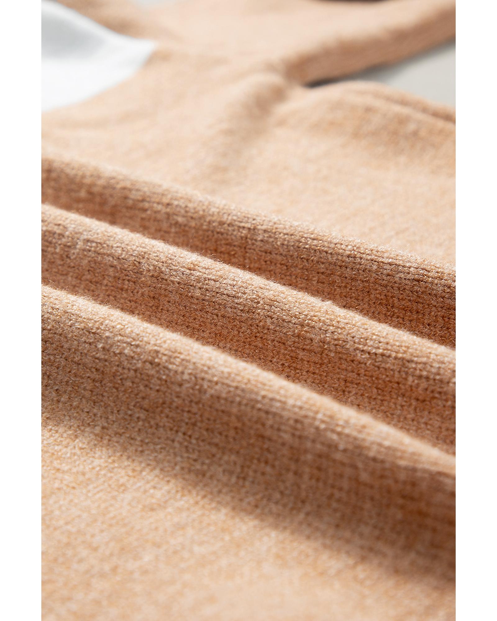 Straw Yellow Colorblock Ribbed Trim Round Neck Sweater – M