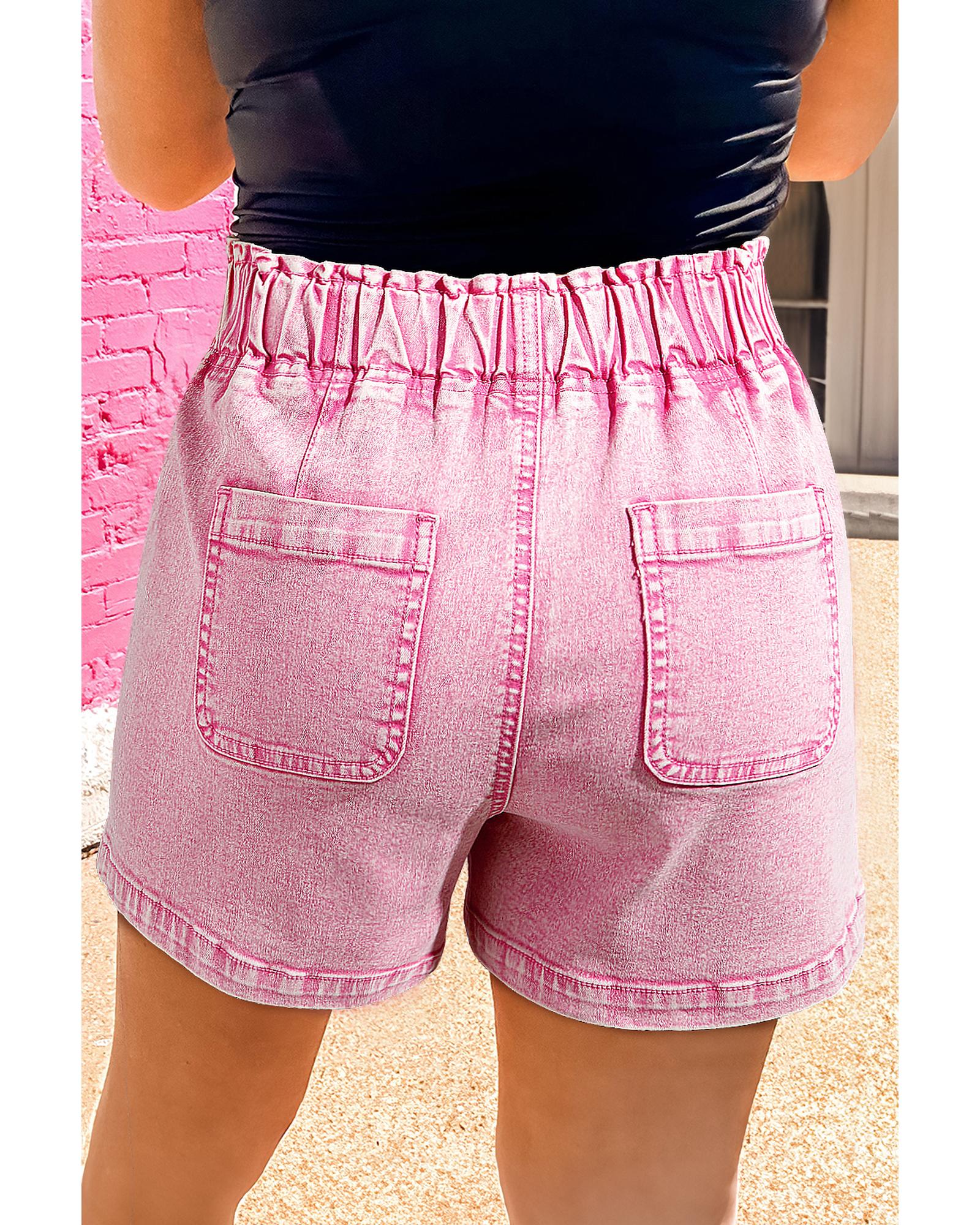 Strawberry Pink Elastic High Waisted Denim Shorts – 12 US
