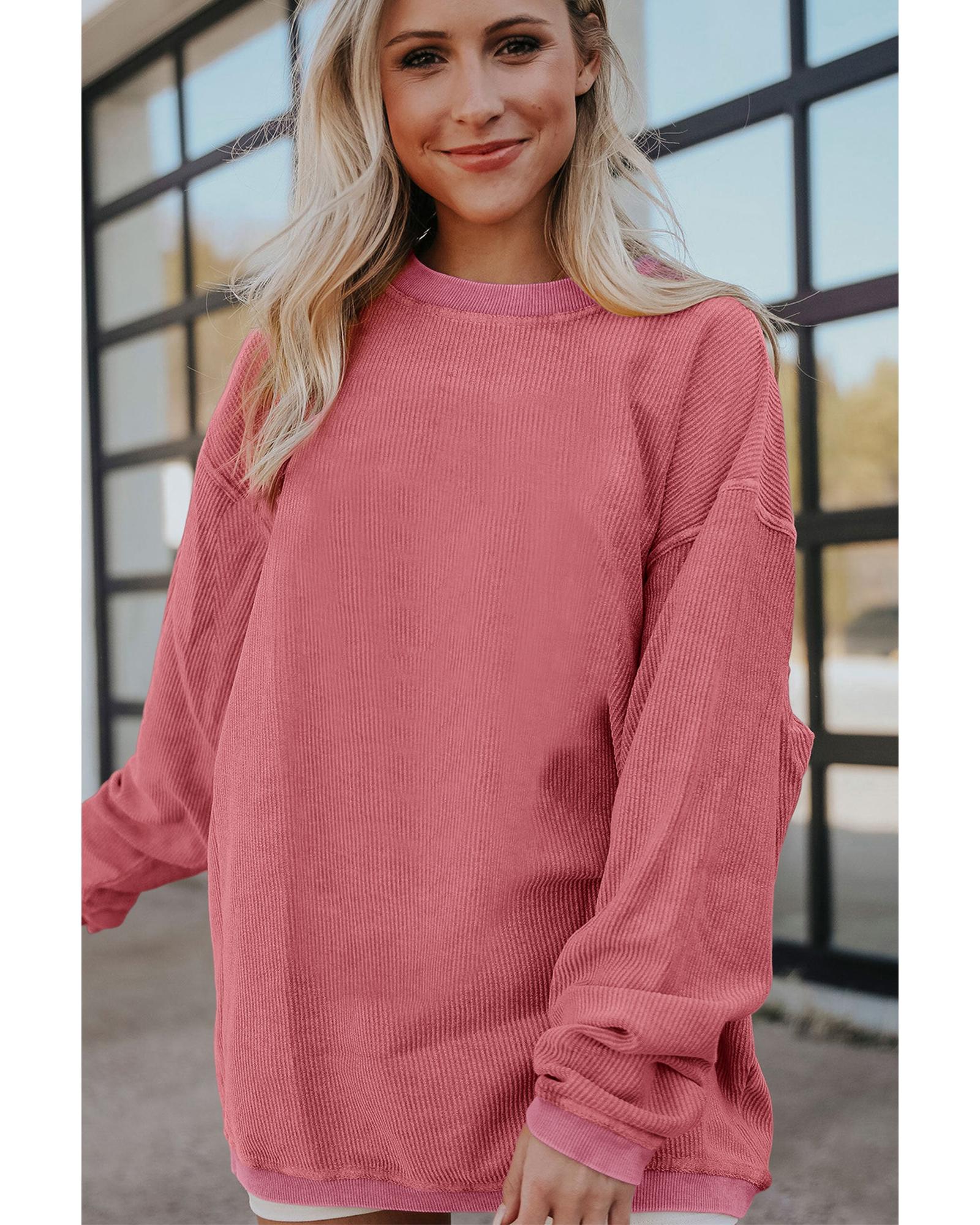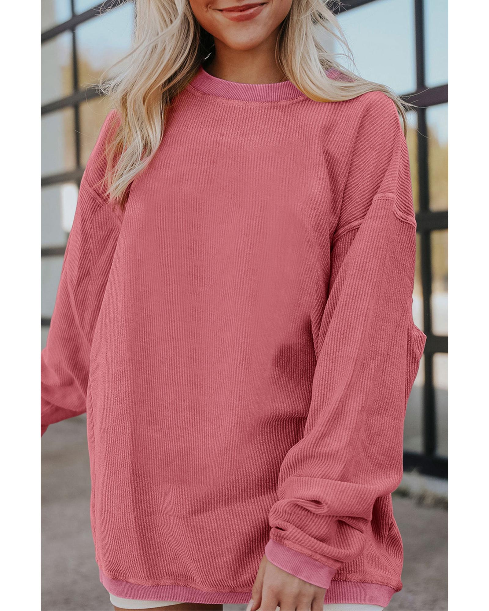 • Strawberry Pink Ribbed Corded Oversized Sweatshirt