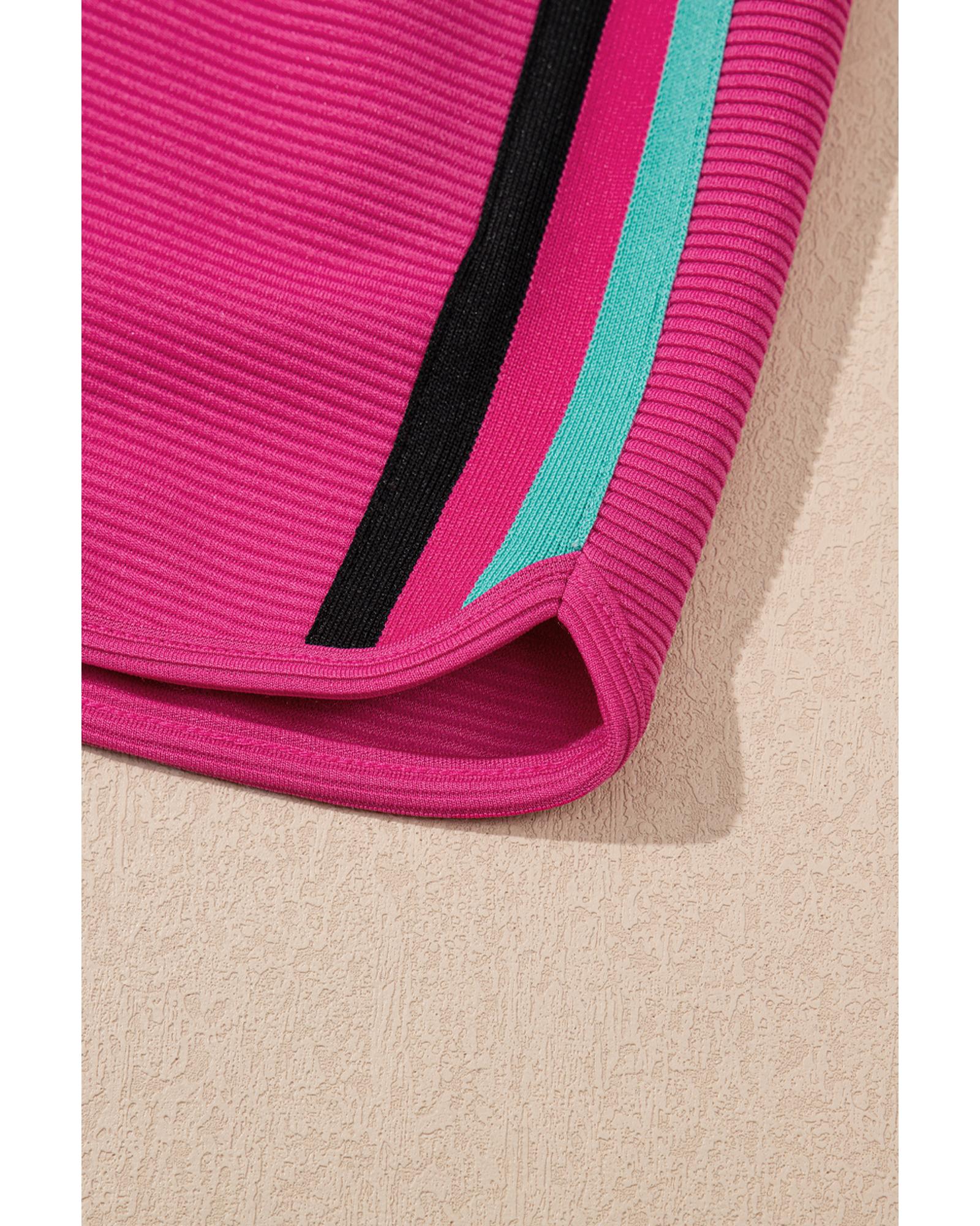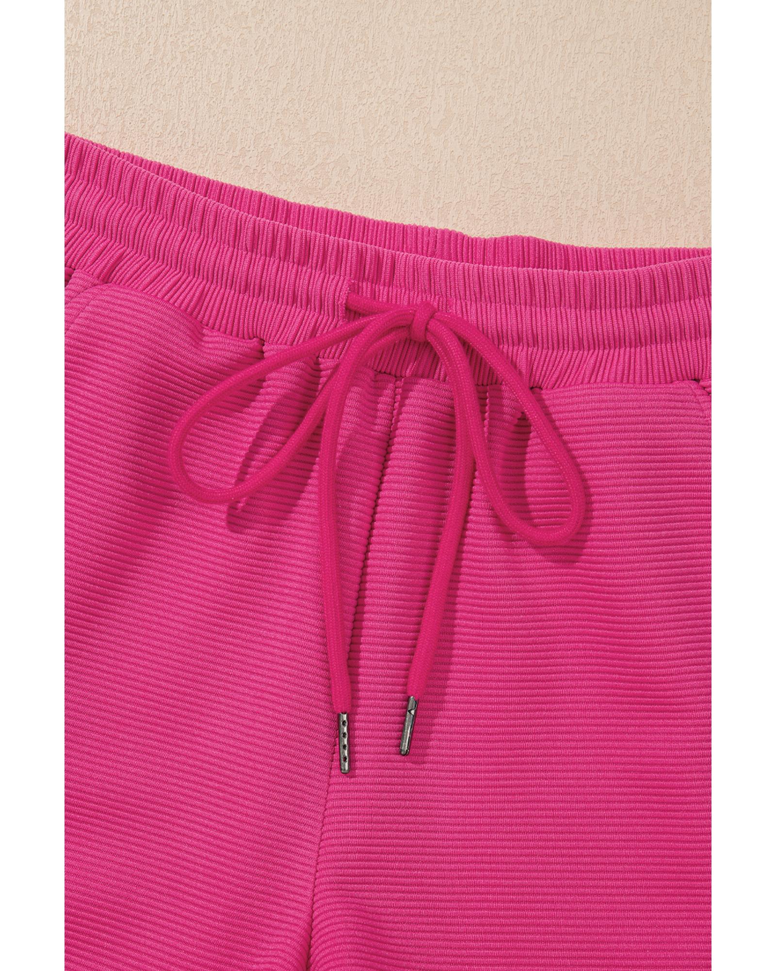 Strawberry Pink Striped Detail Flutter Sleeve Zipped Collar Short Set – L