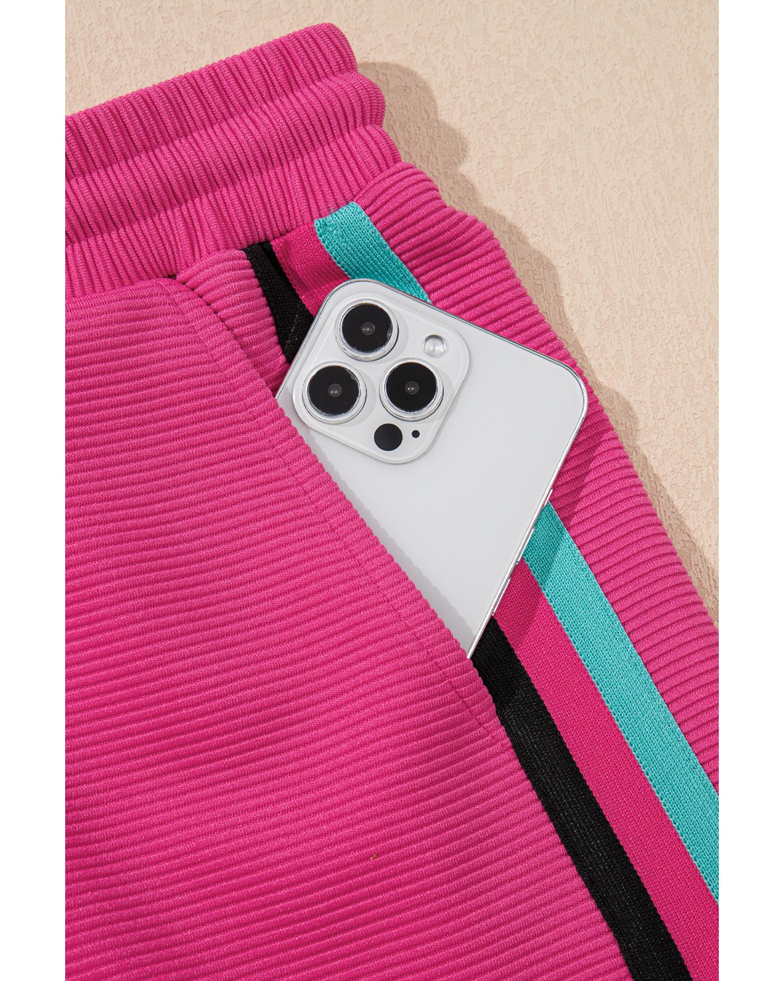 Strawberry Pink Striped Detail Flutter Sleeve Zipped Collar Short Set – S