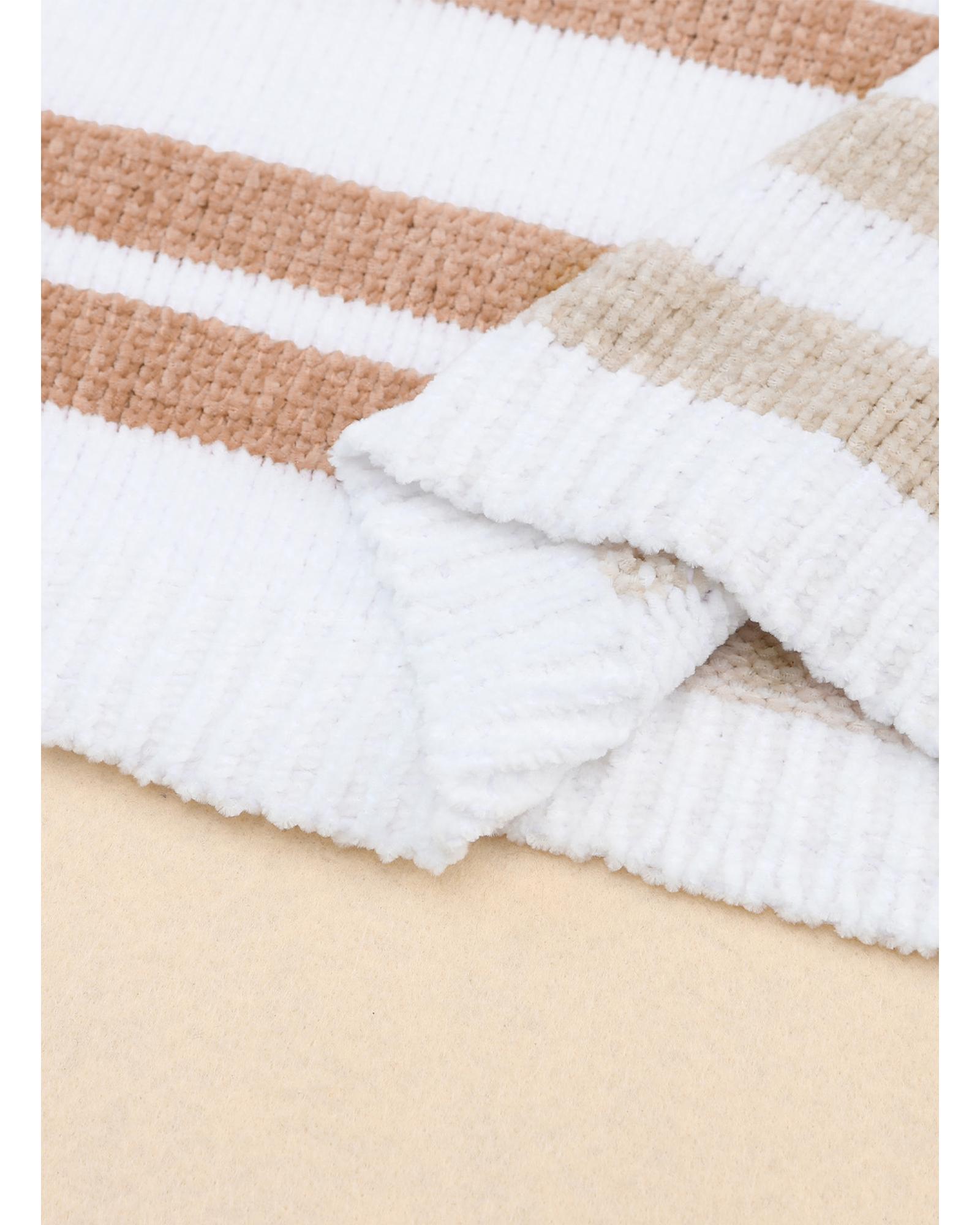 - Super fun knit sweater with multi colors in the stripe and a fun blocking pattern
