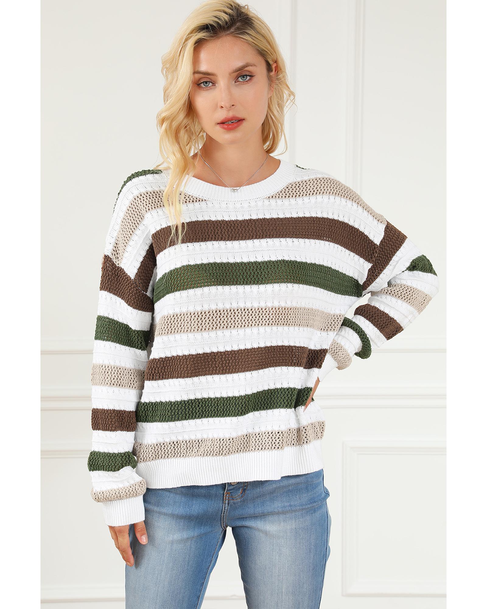 Light Grey Pearled Drop Shoulder Round Neck Sweater - XL