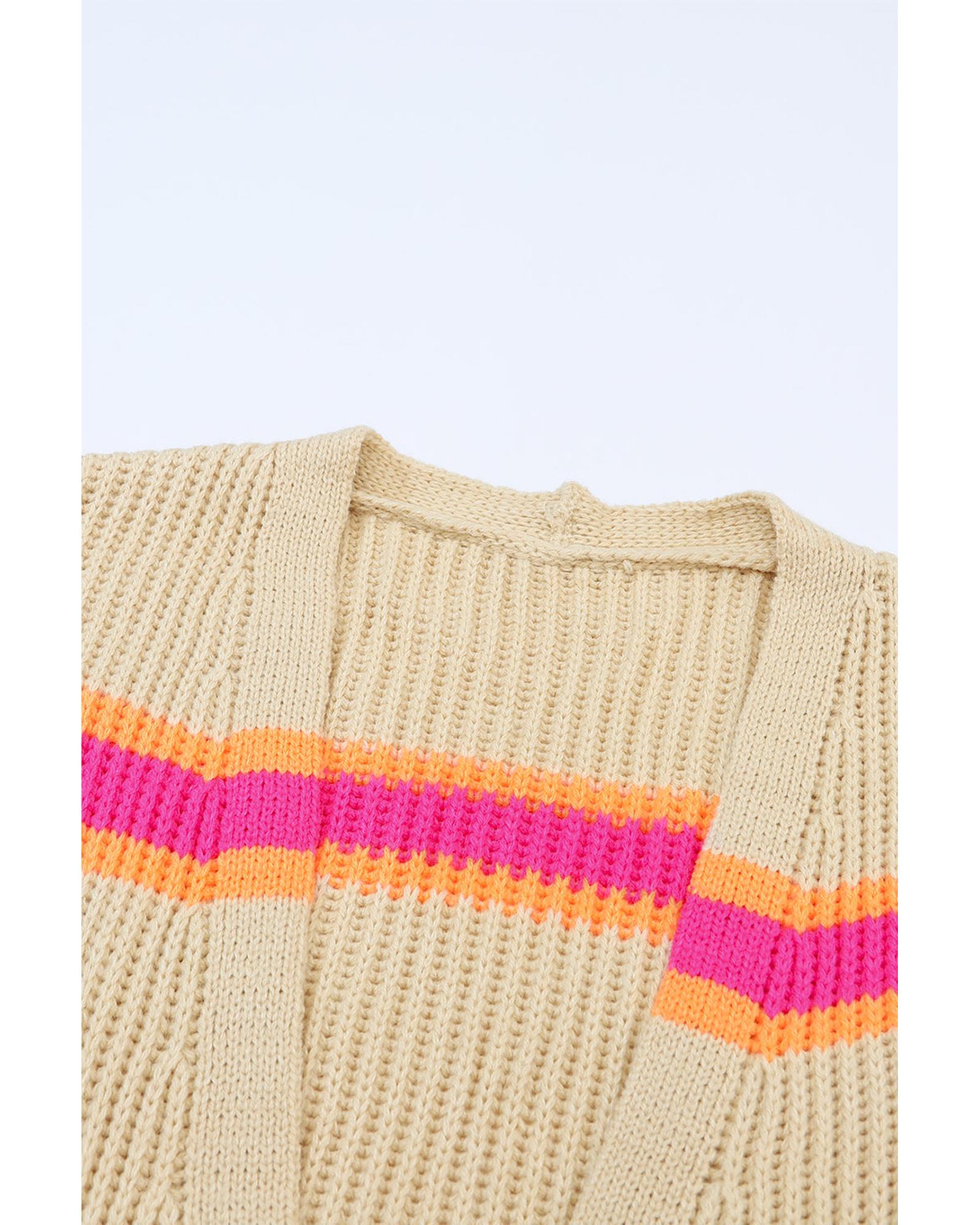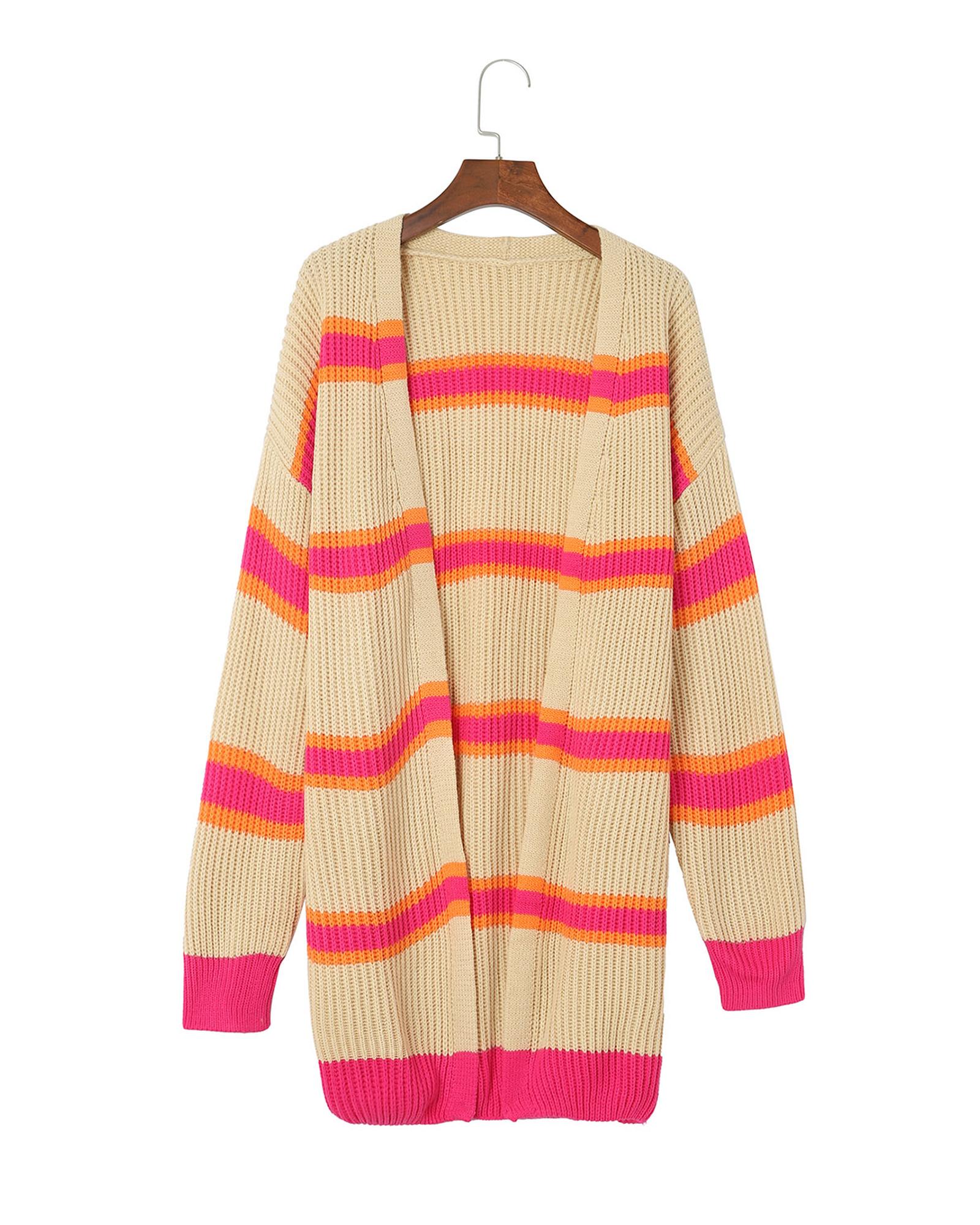 Stripe Printed Ribbed Long Knitted Cardigan – XL