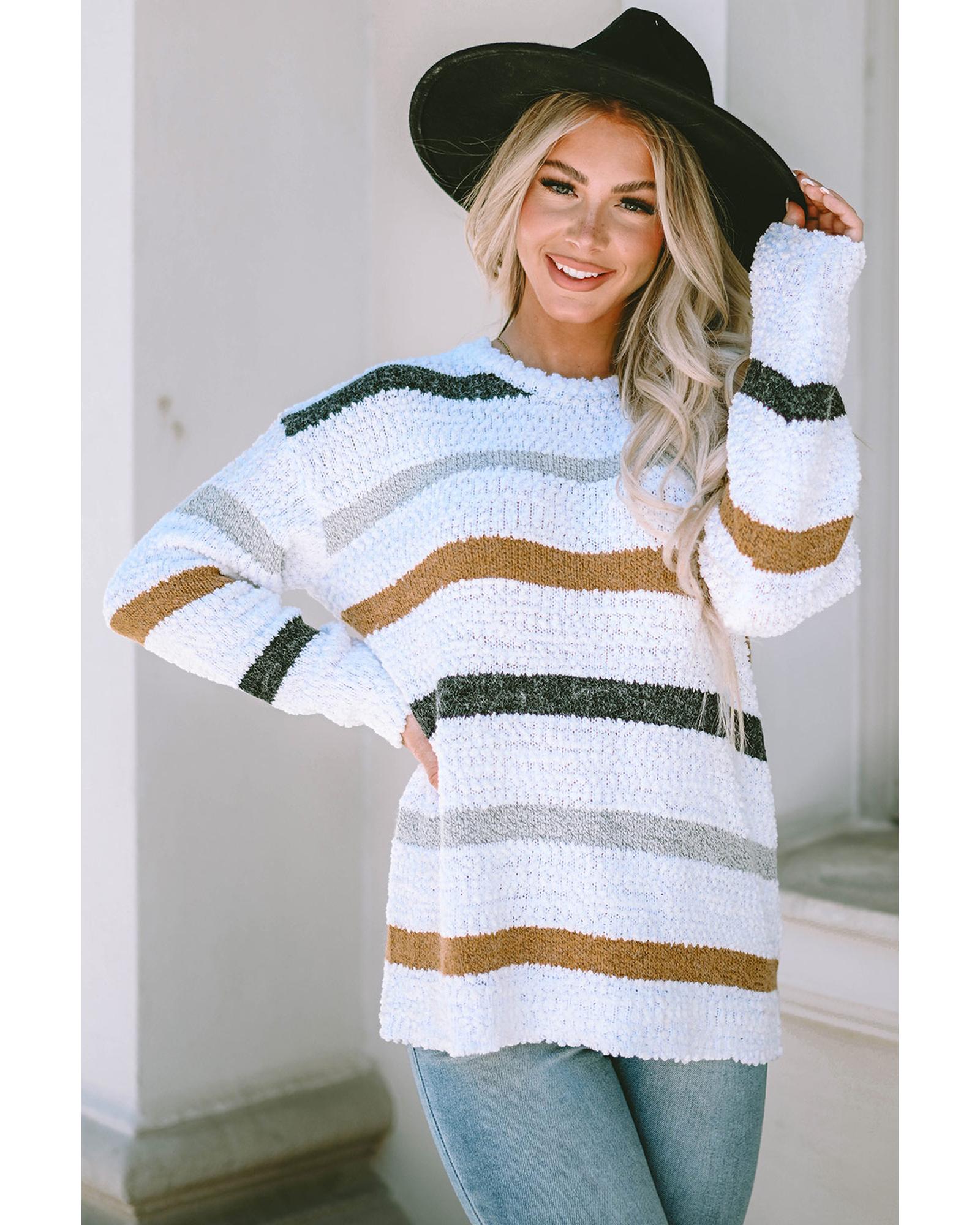 Striped Popcorn Knit Sweater – S