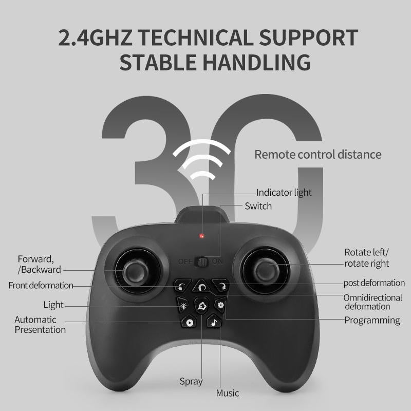 • Can move forward, backward, incline at 45°, rotate 360°, and has four-wheel drive