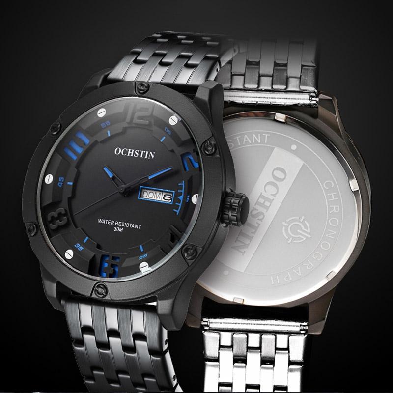 Stylish Day-date Men Quartz Watch with Steel Strap – Black Blue