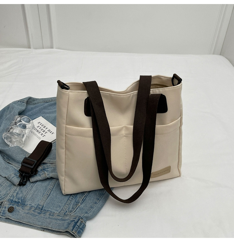 Stylish Beige Canvas Tote Bag with Detachable Shoulder Strap