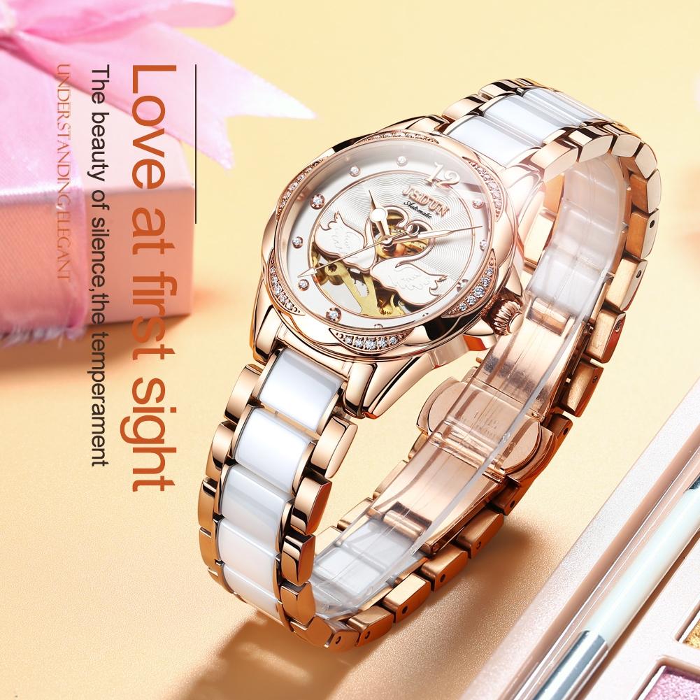 Stylish Waterproof Ceramic Mechanical Watch for Women with Diamond Accents – Blue