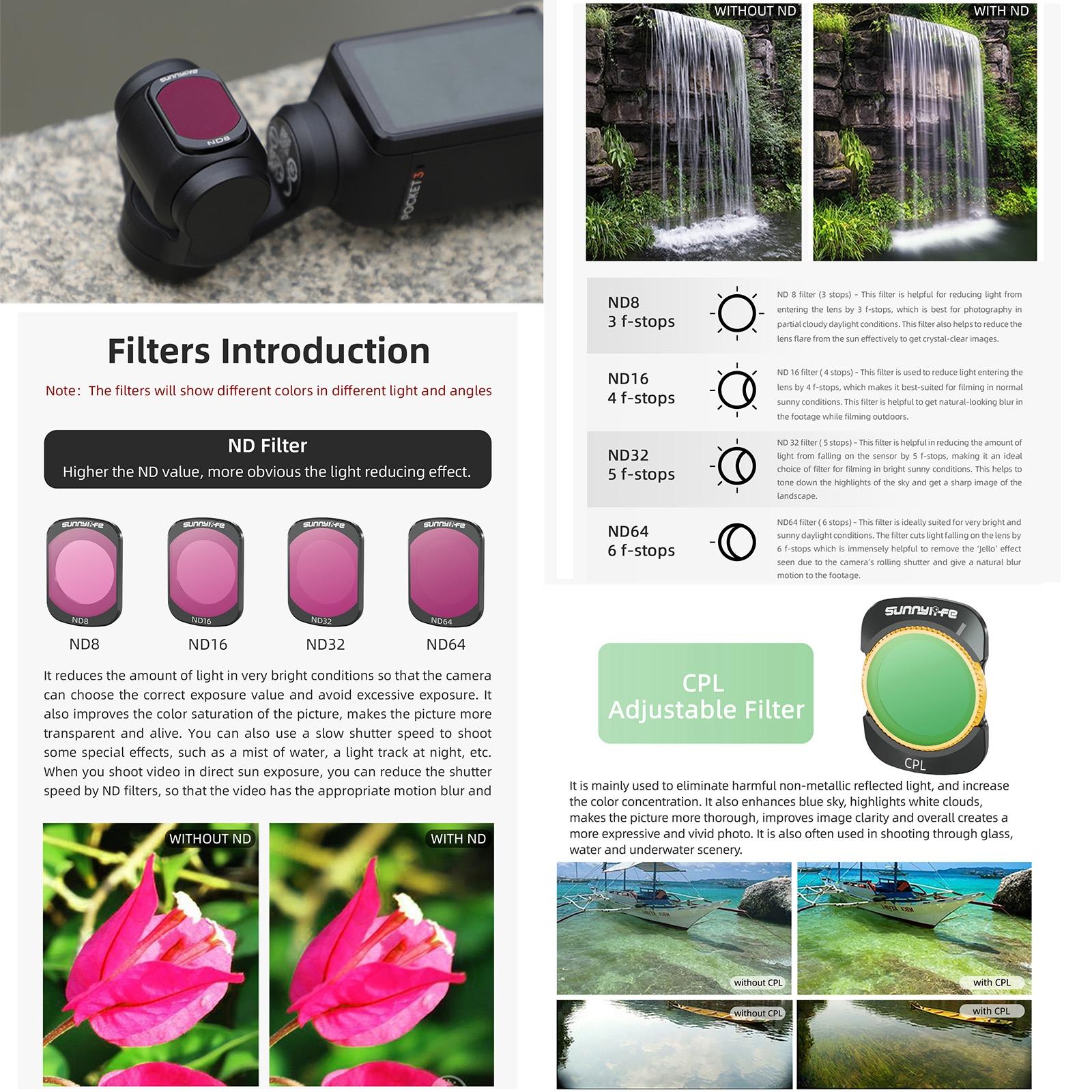 Sunnylife 3 In 1 Nd16 Camera Lens Filter For Dji Osmo Pocket No Gimbal Reset – 4 In 1 Nd8-64Pl