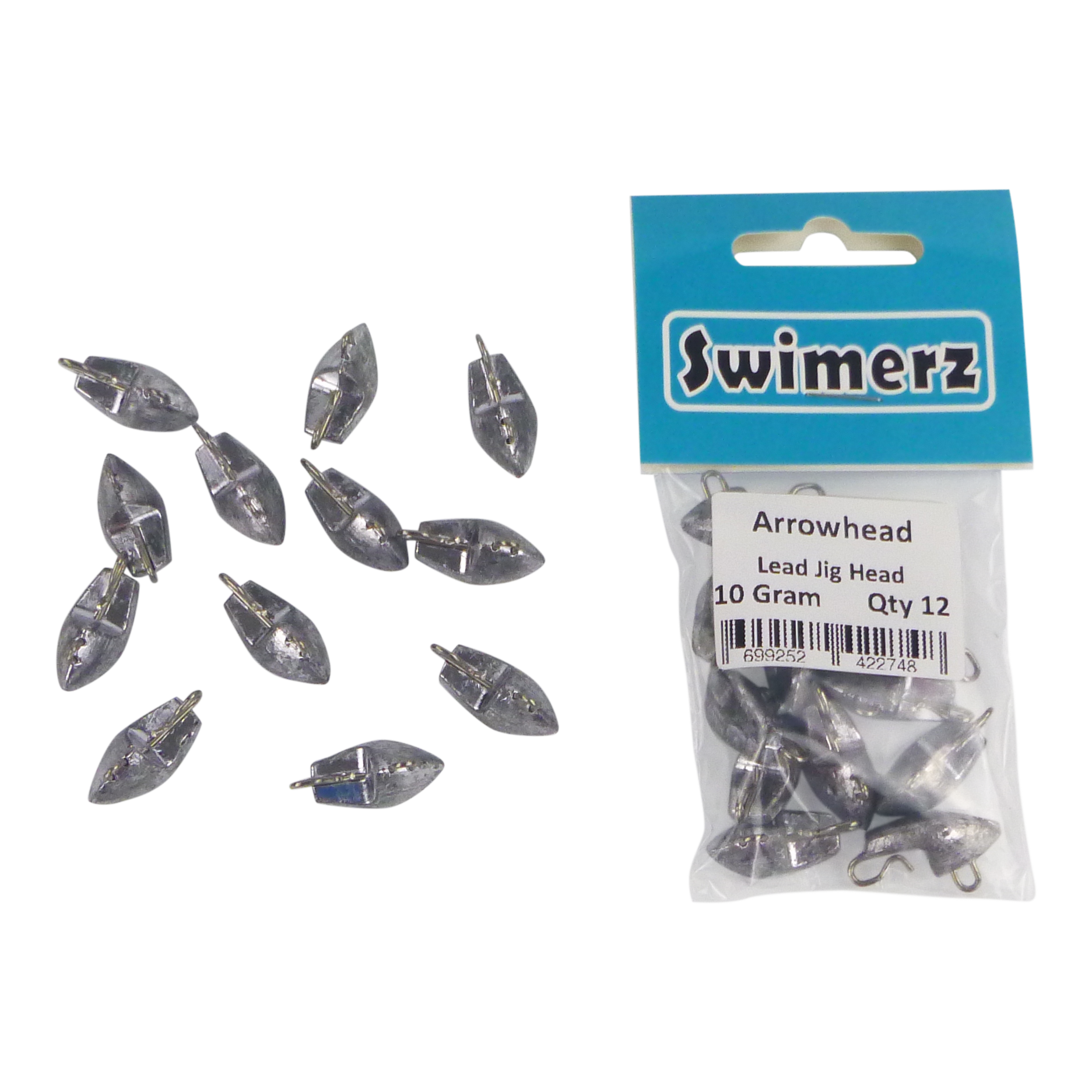 Swimerz 10gm Arrowhead Jig Head, 3/8oz, Lead, Qty 12