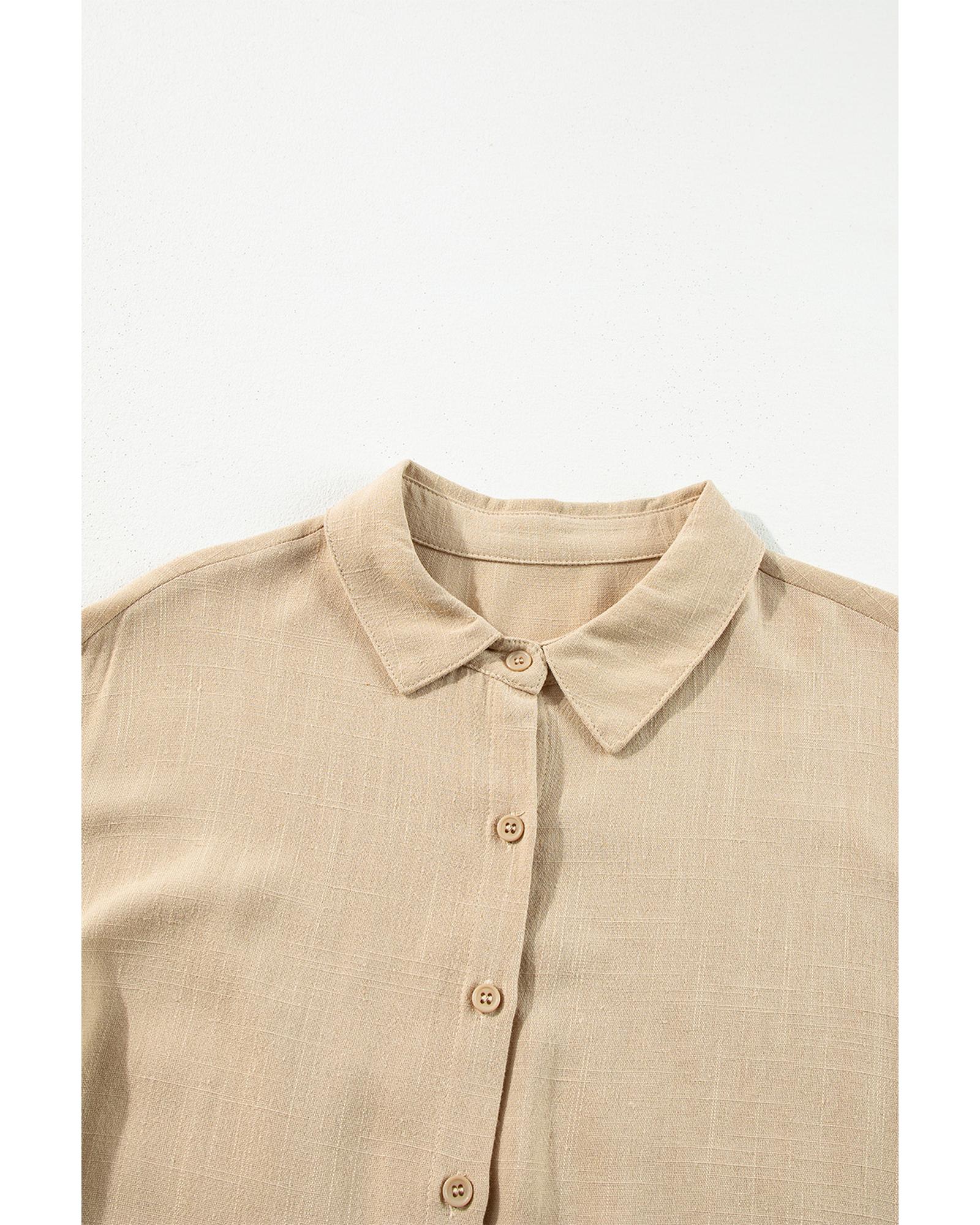 - Tan mini dress with a shirt style