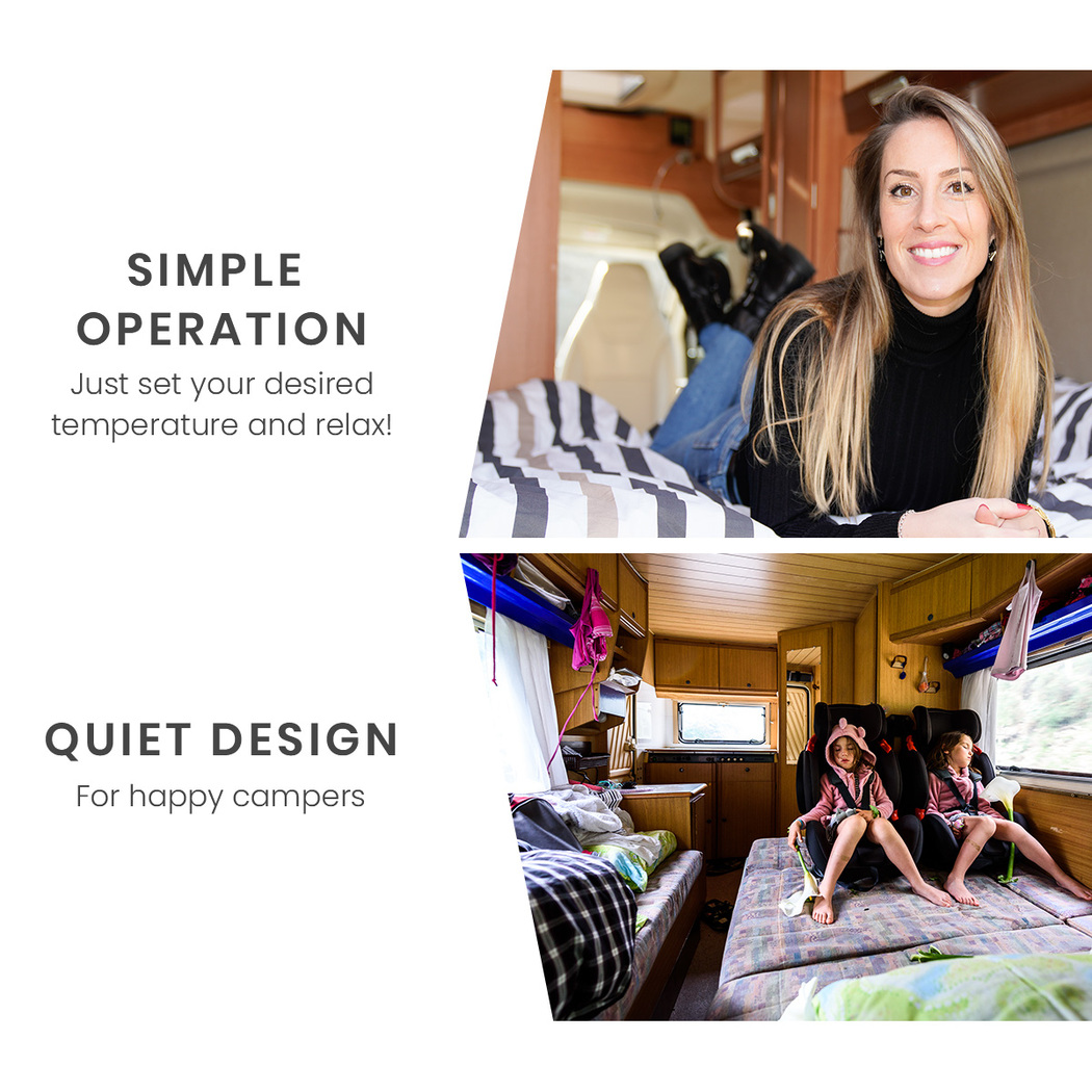 The Thermomate offers powerful, efficient performance thanks to a unique heatsink design that is cast from premium 1050 grade aluminum offering superior thermal conductivity. Whether you’re in a caravan, motorhome, camper trailer, truck or boat your space will be toasty in no time, and any frost on windows will quickly disappear. Once the target temperature is reached, the Thermomate is surprisingly quiet, so you’ll have happy campers and everyone will enjoy a good night’s sleep.