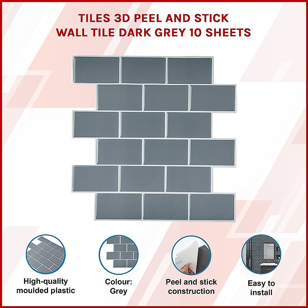 Tiles 3D Peel and Stick Wall Tile Dark Grey 10 Sheets