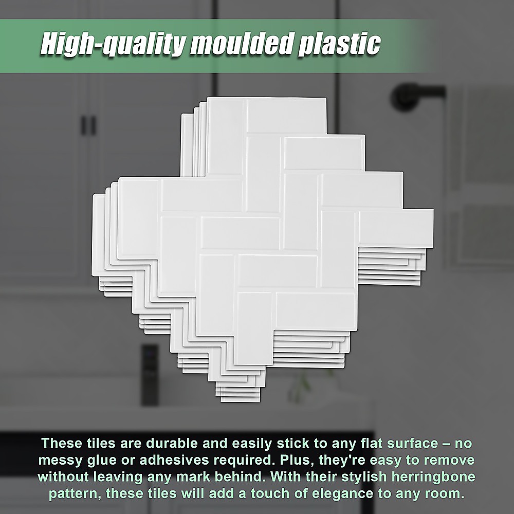 If you are looking for a unique way to dress up your walls, get your hands on these Stick Wall Tiles. These tiles are durable and easily stick to any flat surface no messy glue or adhesives required. Plus, they're easy to remove without leaving any mark behind. With their stylish herringbone pattern, these tiles will add a touch of elegance to any room.