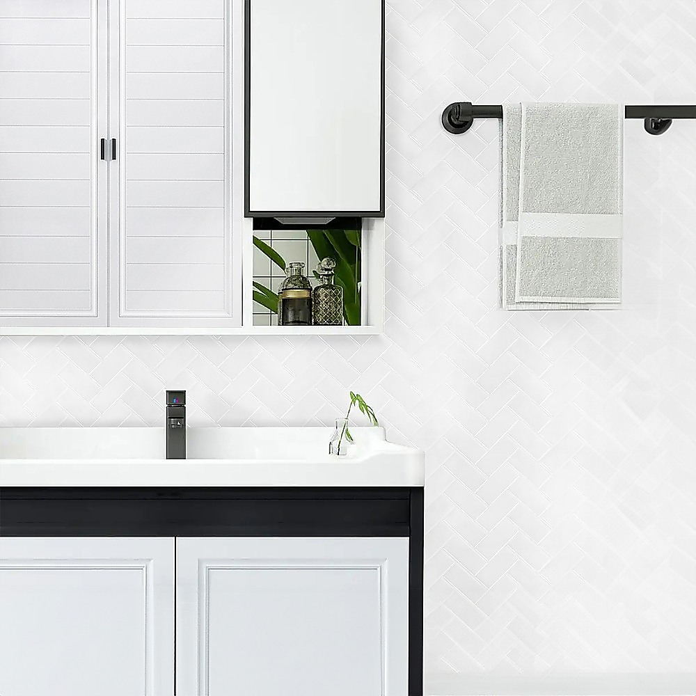 Tiles 3D Peel and Stick Wall Tile Herringbone White 10 Sheets