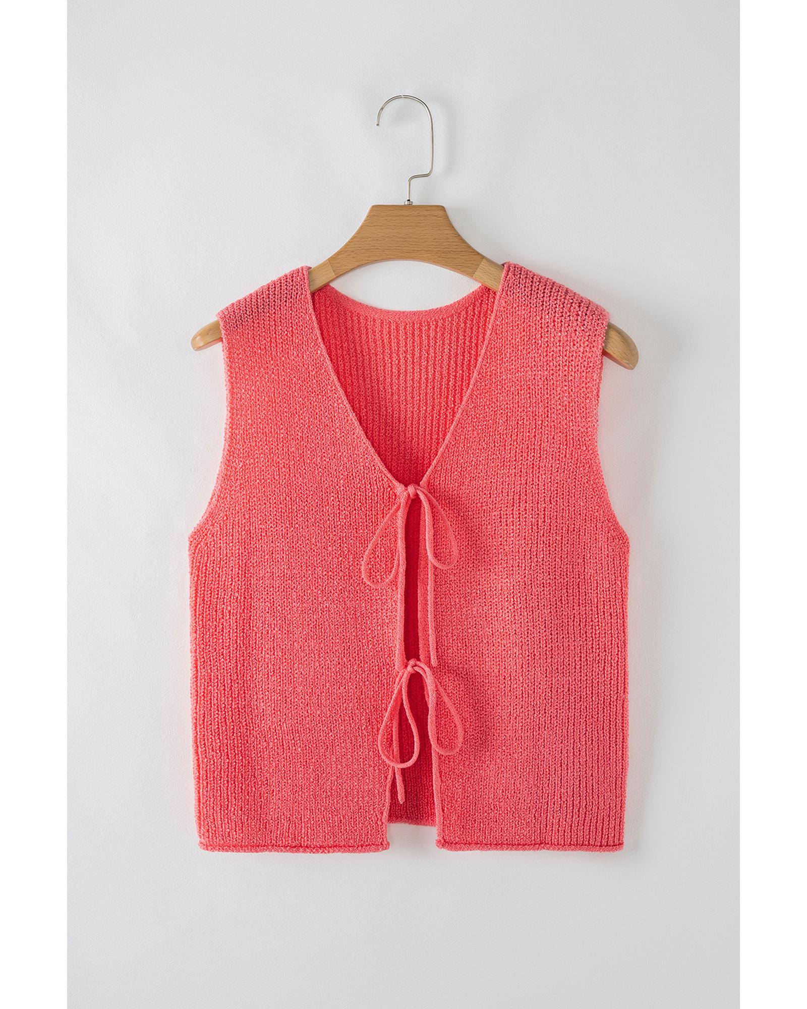 Tomato Red Lace-up Front V Neck Sweater Vest – M