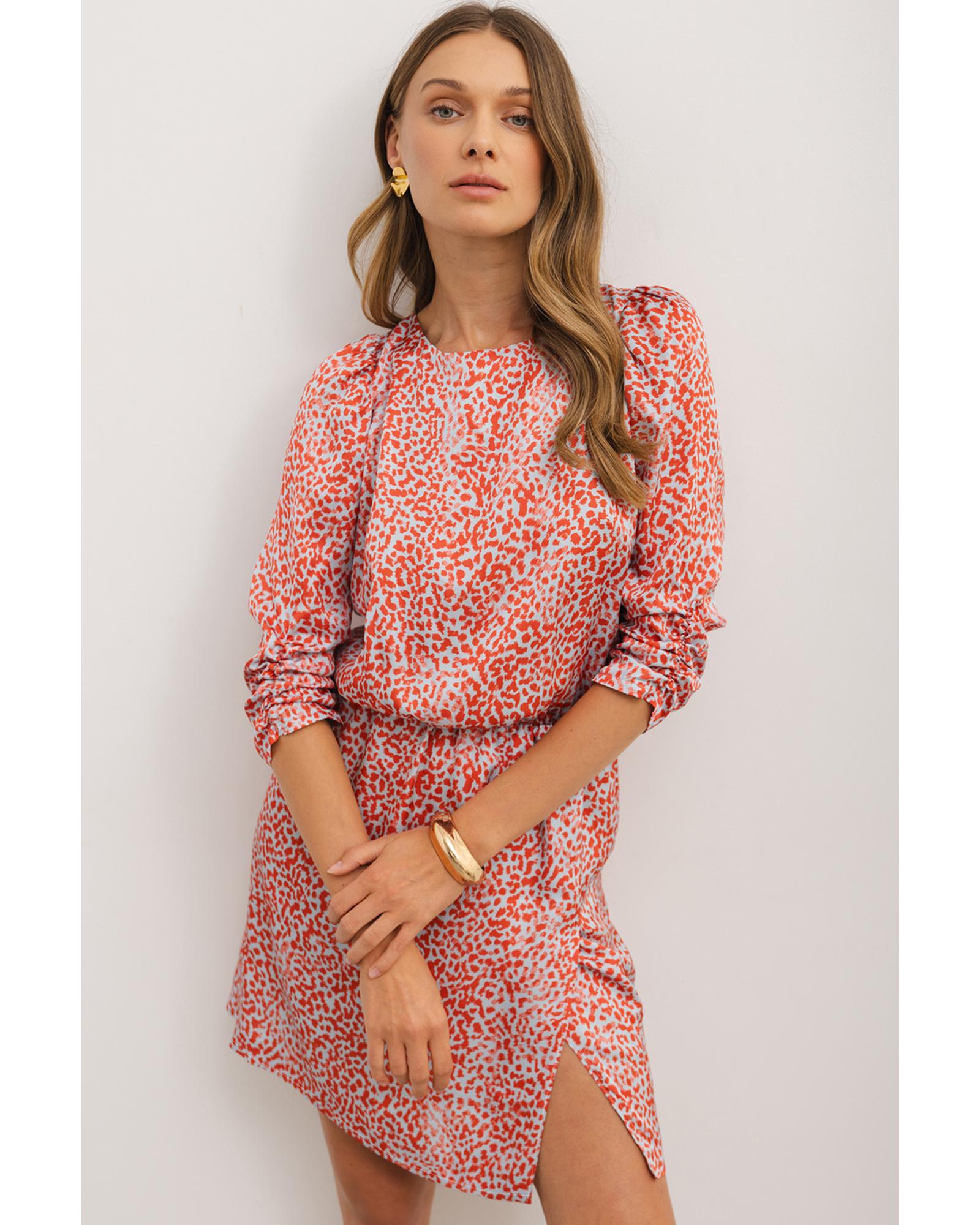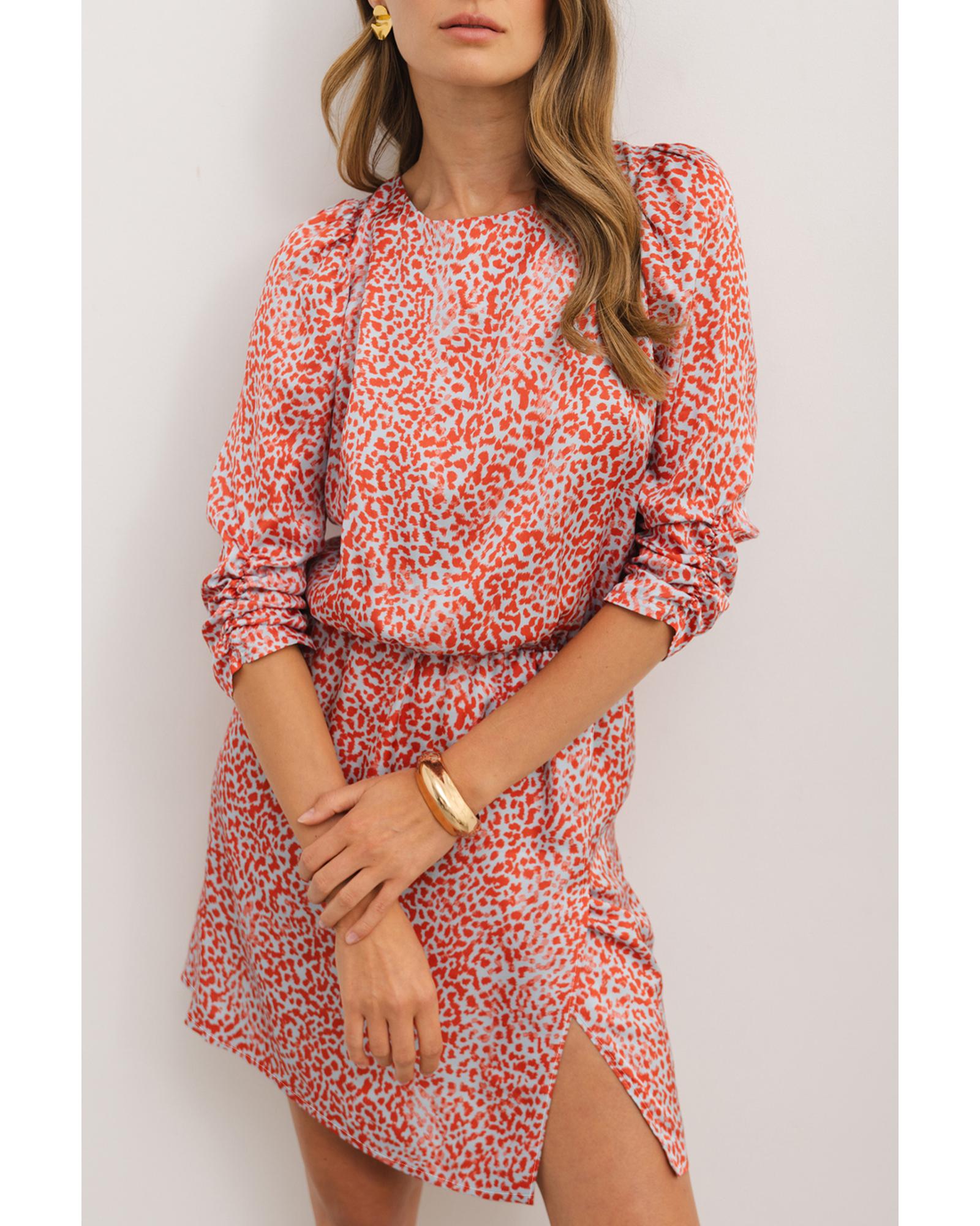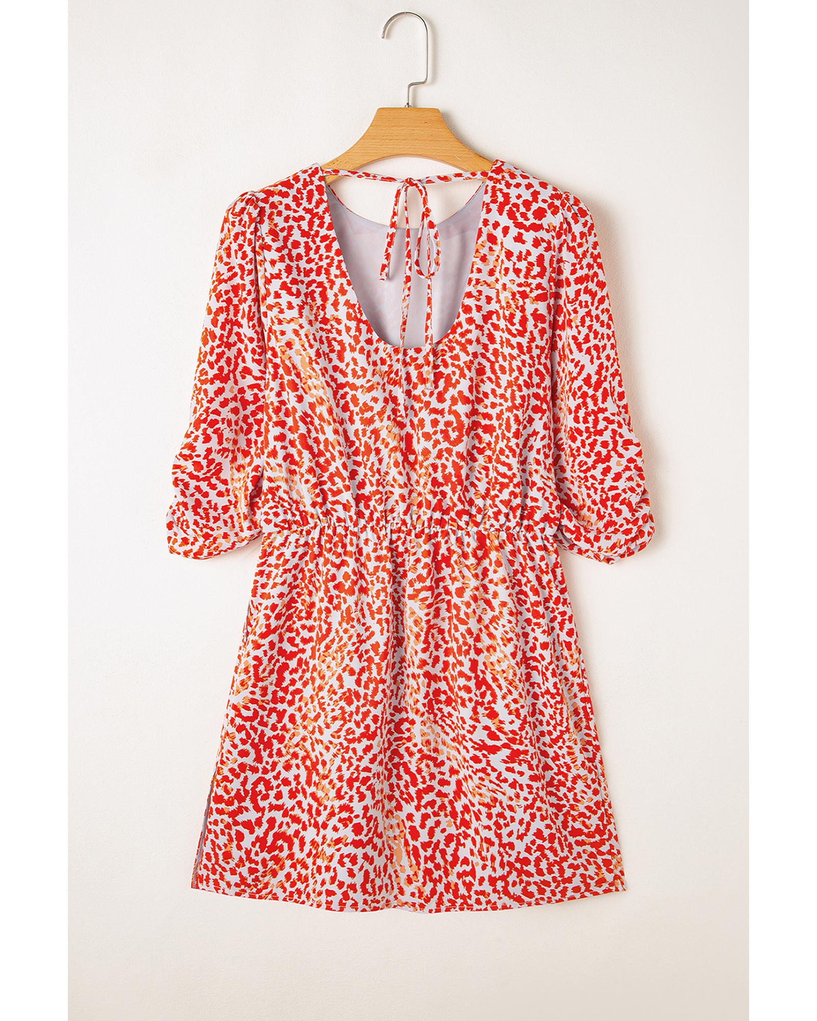 Tomato Red Leopard Print Long Sleeve Hollowed Back Split Mini Dress – S