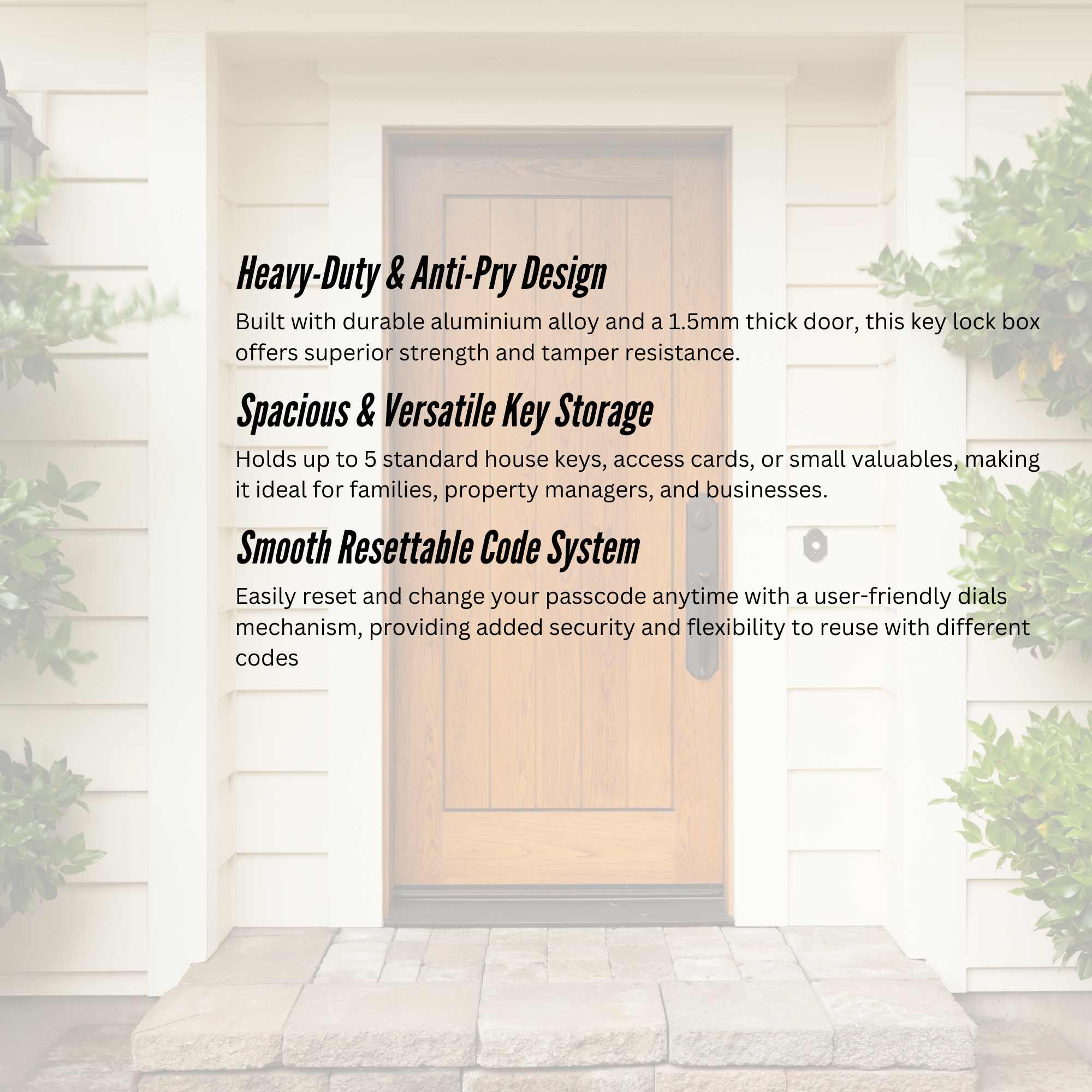 • Weatherproof and Rust-Resistant – Designed to withstand outdoor conditions, making it perfect for home entryways, real estate agents, rentals, and Airbnb properties.